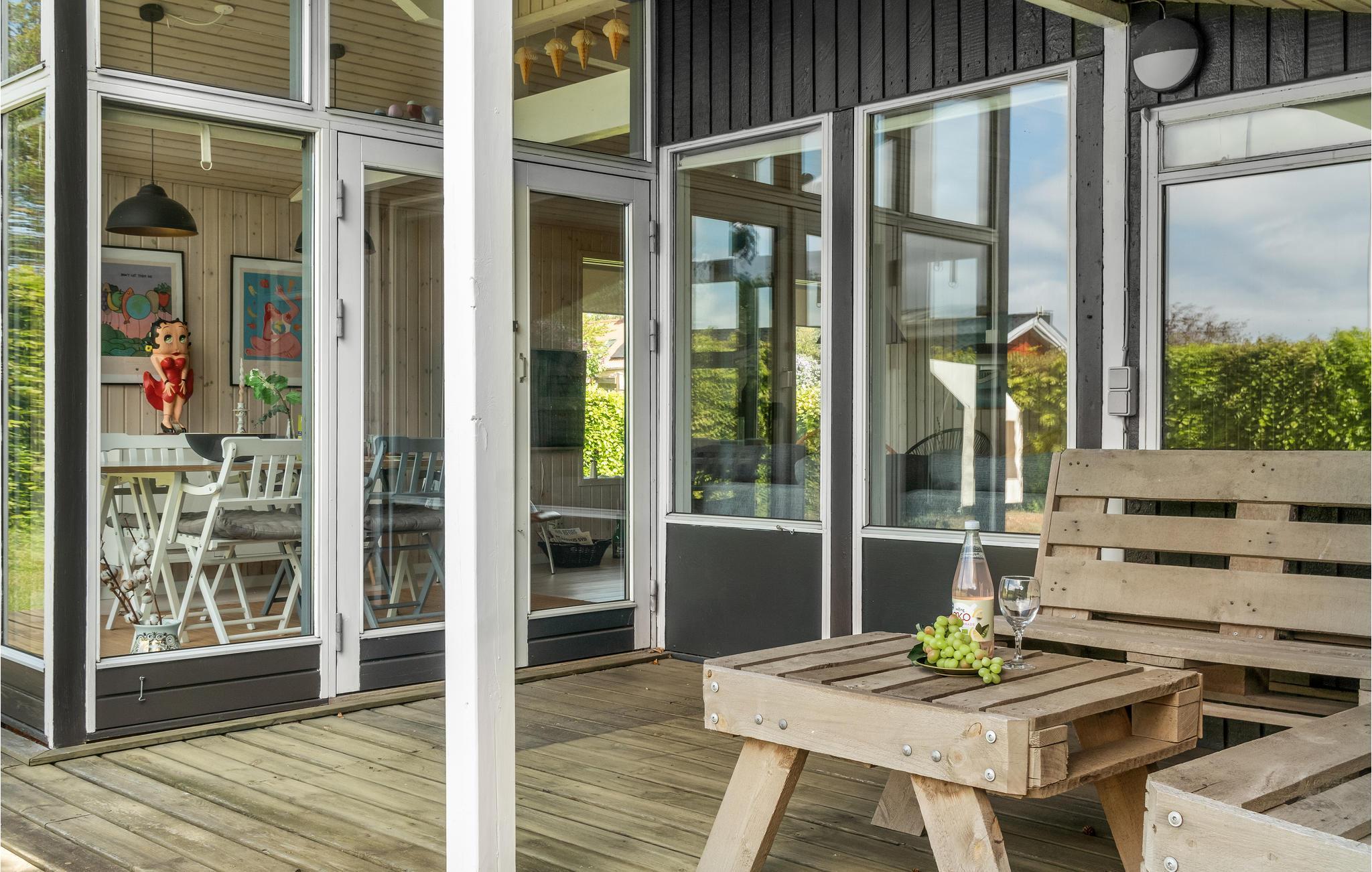 Kommen Sie mit Ihrer kleinen Familie hier an und fühlen sich wohl. Das lichtdurchflutete und kompakte Haus ist eine wahre Ruheoase, die Sie zum gemeinsamen Genießen Ihrer Urlaubstage einlädt. Versammeln Sie sich am Abend um den Kaminofen oder machen Sie es sich bei einem unterhaltsamen Film vor dem Fernseher bequem. Das Esszimmer gibt Ihnen durch die umgebenden Fenster das Gefühl im Garten zu sitzen und Ihre Mahlzeiten zu genießen. Am Nachmittag oder auch den Abenden können Sie es sich auf den Gartenmöbeln auf der überdachten Terrasse gemütlich machen und die Abende ausklingen lassen.