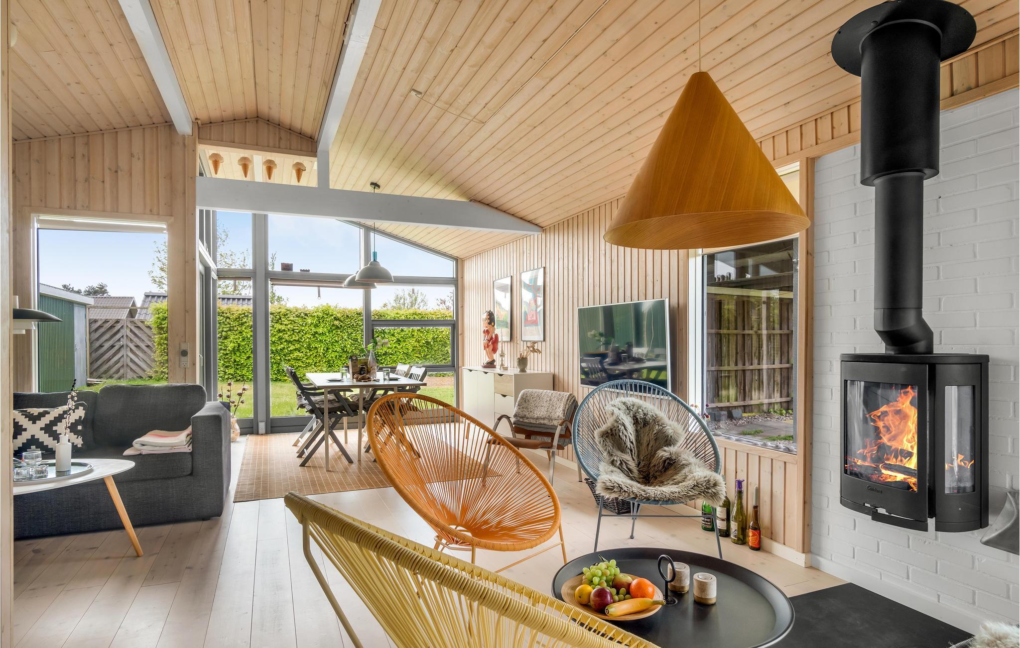 Gemütliches Ferienhaus nahe Sandstrand mit Kamin und überdachter Terrasse in Næsby Strand, Dänemark.