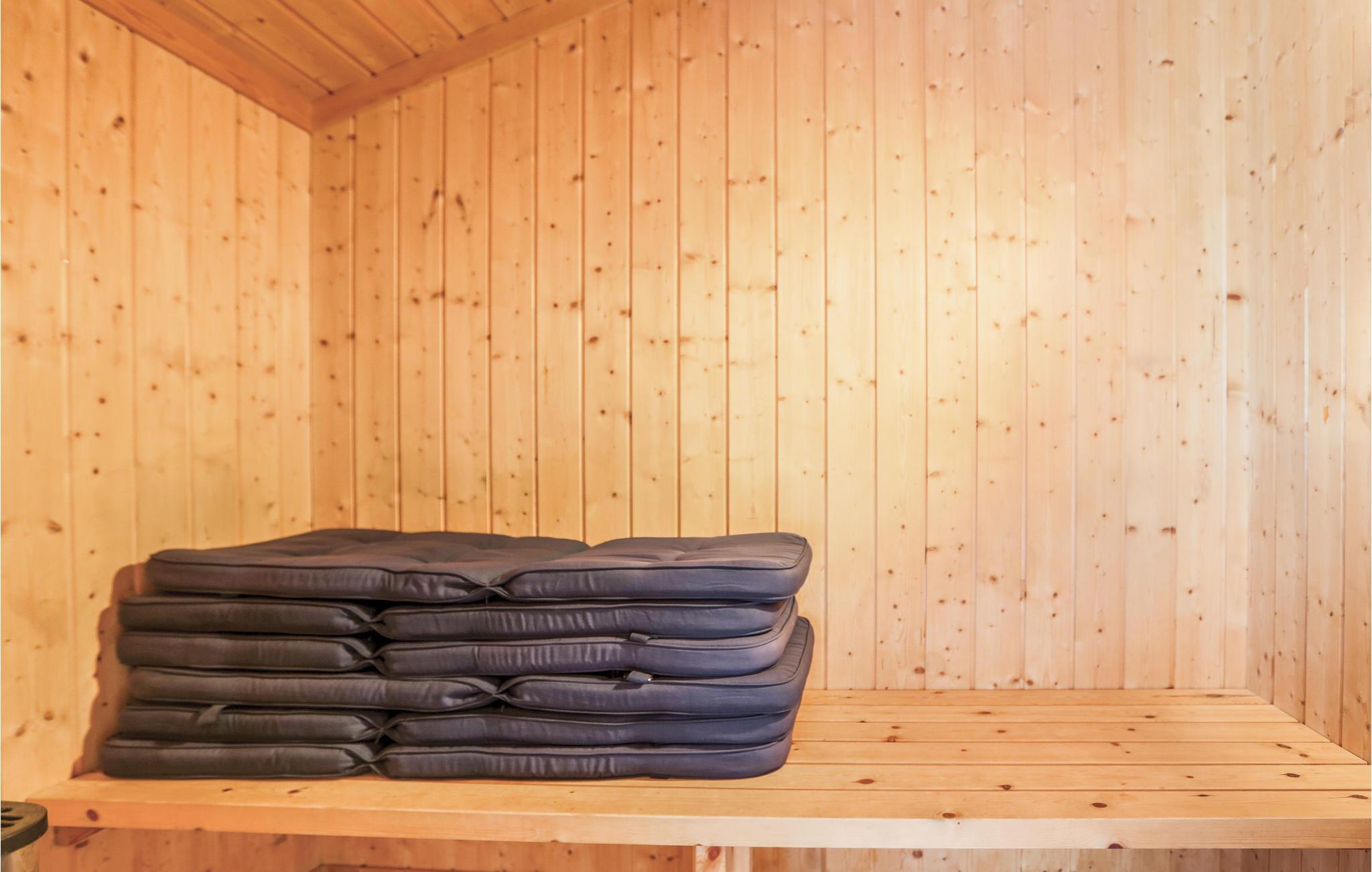 Idyllisches Holzhaus nahe Sandstrand mit Sauna und Whirlpool in ruhiger Naturumgebung.