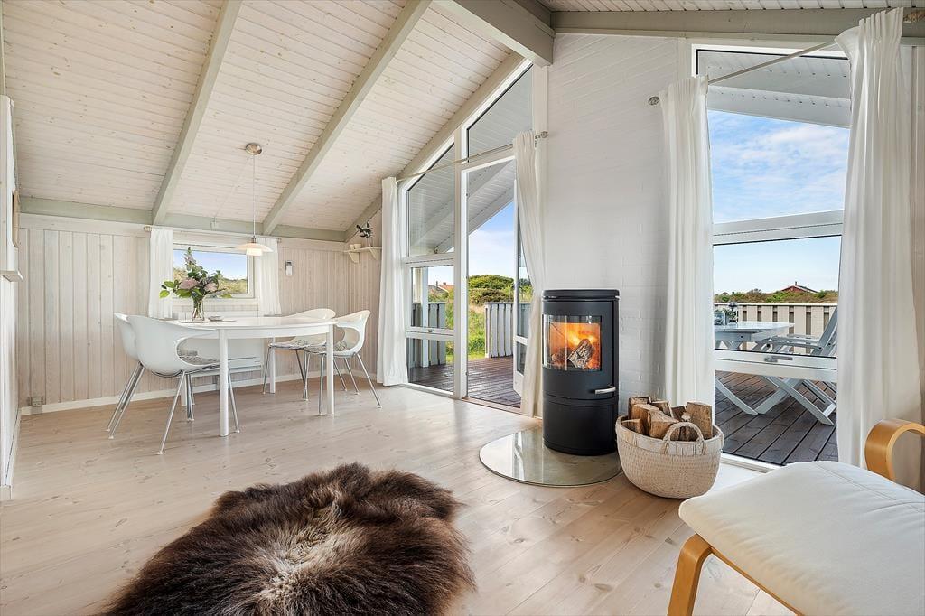 Wenn Sie das Ferienhaus betreten, werden Sie von einer hellen und einladenden Atmosphäre empfangen. Die Einrichtung strahlt Gemütlichkeit und Wärme aus, und das Haus ist mit viel Liebe zum Detail gepflegt – funktional und charmant zugleich. Im Wohnzimmer sorgt ein Kaminofen für wohlige Wärme und eine behagliche Stimmung – ideal für einen ruhigen Abend mit einem guten Buch oder einem Gesellschaftsspiel. Die großen Fenster lassen viel Tageslicht herein und vermitteln ein wunderbares Gefühl von Naturverbundenheit.
