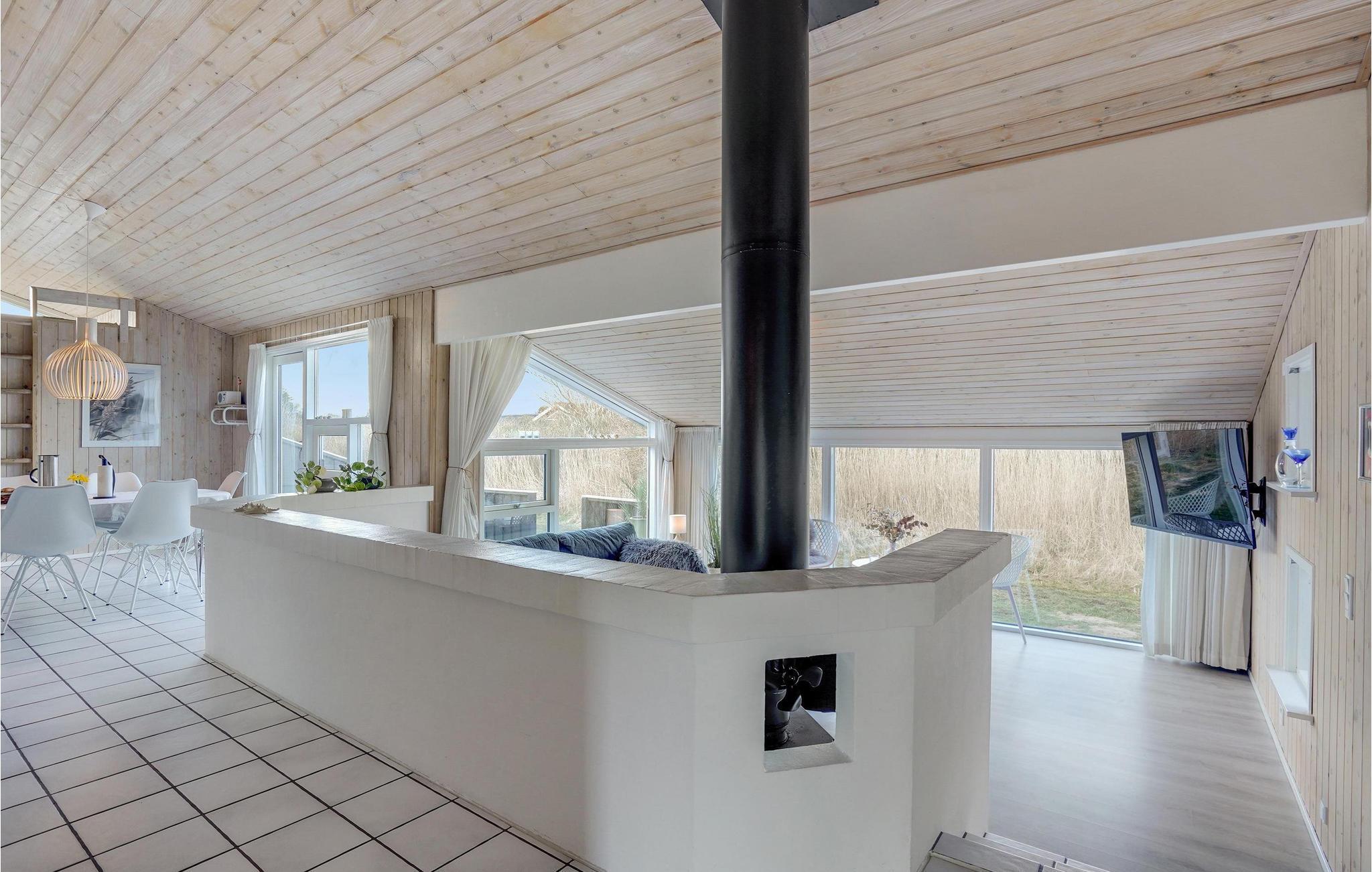 Das Ferienhaus befindet sich in einer sehr ruhigen Umgebung mit den Binnendünen als nächstem Nachbarn. Gönnen Sie sich eine Auszeit von Ihrem Alltag und reisen mit Ihrer Großfamilie oder einer befreundeten Familie nach Noerlev Strand. Das schöne Haus ist gut ausgestattet und hell, da große Fenster das natürlich Licht ins Innere lassen. Für Ihr persönliches Wellnessprogramm finden Sie im Badezimmer eine Whirlpool-Badewanne und Sauna. Machen Sie es sich auf den Sofas bequem und genießen den Meerblick bei einer Tasse Tee oder einem Glas Wein. Entspannen Sie auch unter dem blauen Himmel auf der guten Terrasse, so dass Sie immer Schutz finden können.
