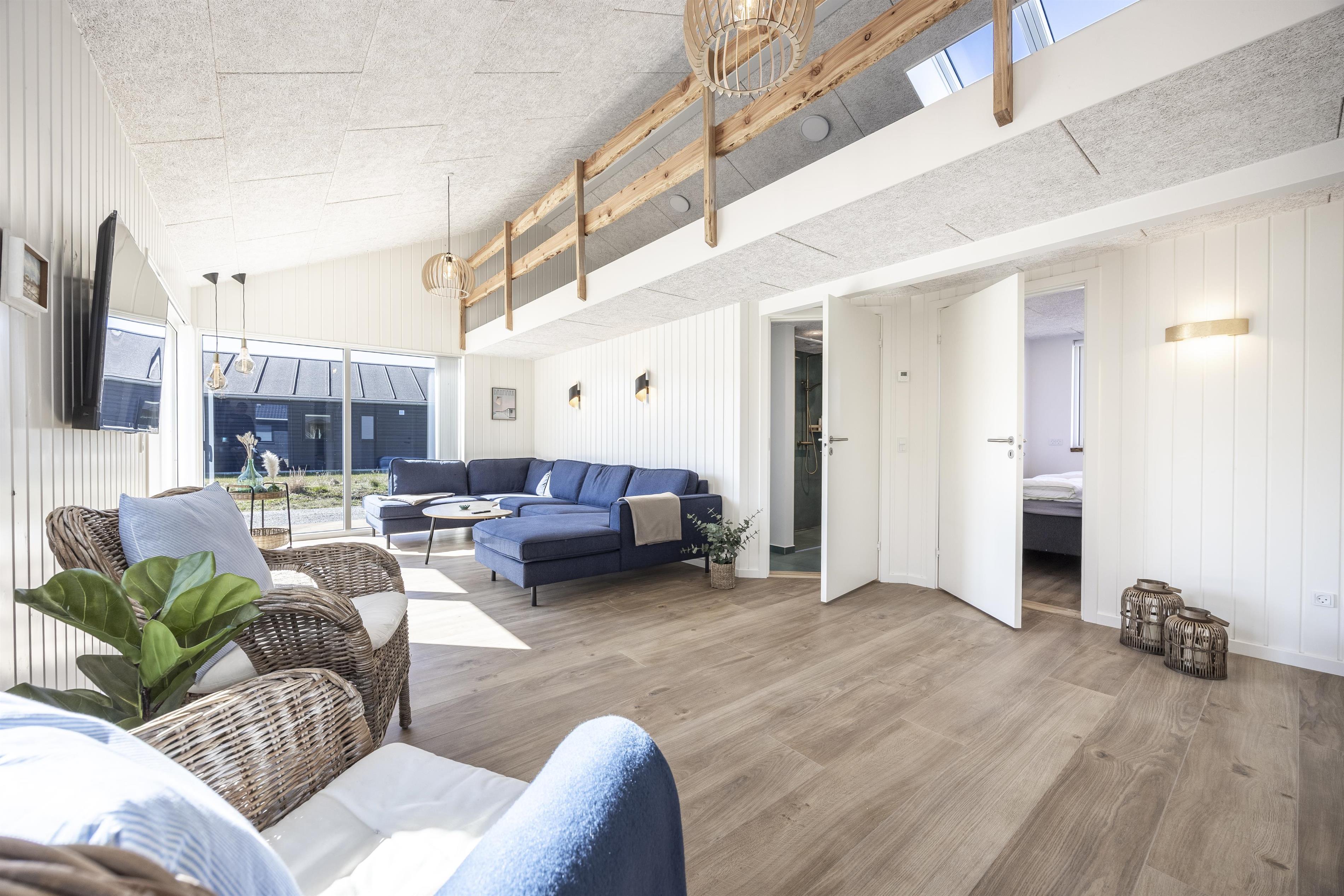 Herzlich willkommen in diesem exklusiven, neu erbauten Ferienhaus an der malerischen Westküste in Nørlev – dem idealen Rahmen für ein unvergessliches Urlaubserlebnis. Hier vereinen sich moderner Komfort, stilvolles Interieur und durchdachte Details, um Ihnen einen ganz besonderen Aufenthalt zu ermöglichen. Das Ferienhaus wurde aus hochwertigen Materialien errichtet und präsentiert sich sowohl exklusiv als auch einladend. Jede Ausstattung wurde sorgfältig ausgewählt, um die besten Voraussetzungen für einen erholsamen und erlebnisreichen Urlaub in unmittelbarer Nähe zu Strand und Dünen zu schaffen.