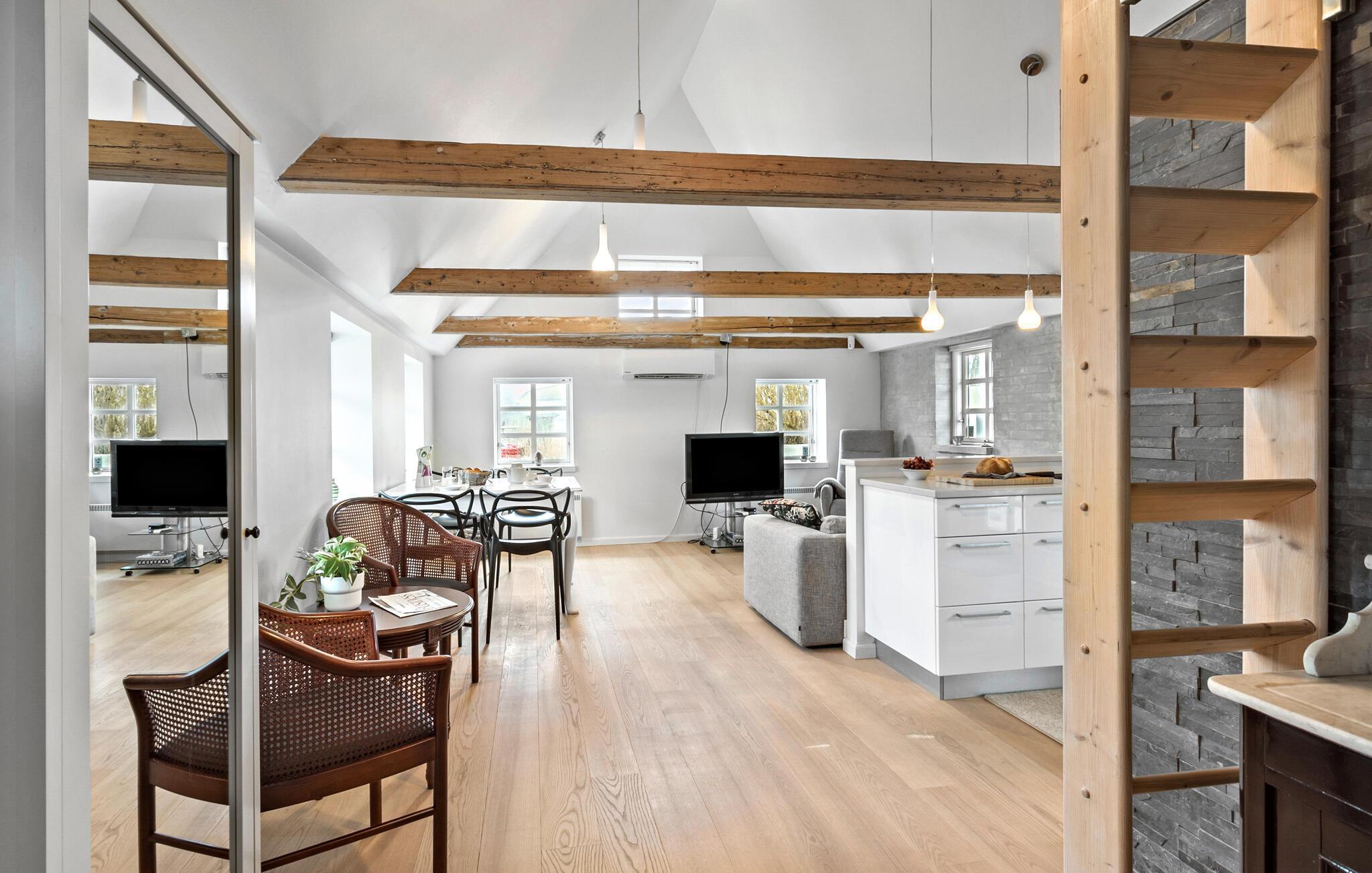 Freuen Sie sich auf Ihren Aufenthalt in diesem modernisierten Ferienaus mit hohen Decken, sichtbares Fachwerk und einem offenen Wohnkonzept, in dem Sie sich einfach wohlfühlen werden. Das Zusammenspiel der ursprünglichen Mauern, Holz und der Modernität der Räume schafft ein besonders einladendes Wohnambiente. Fühlen Sie sich hier wie zuhause und freuen sich im Sommer auf zahlreiche Sonnenstunden auf der Terrasse und im Garten. Sollten die Temperaturen kühler werden, können Sie es sich am Abend in der Orangerie gemütlich machen.