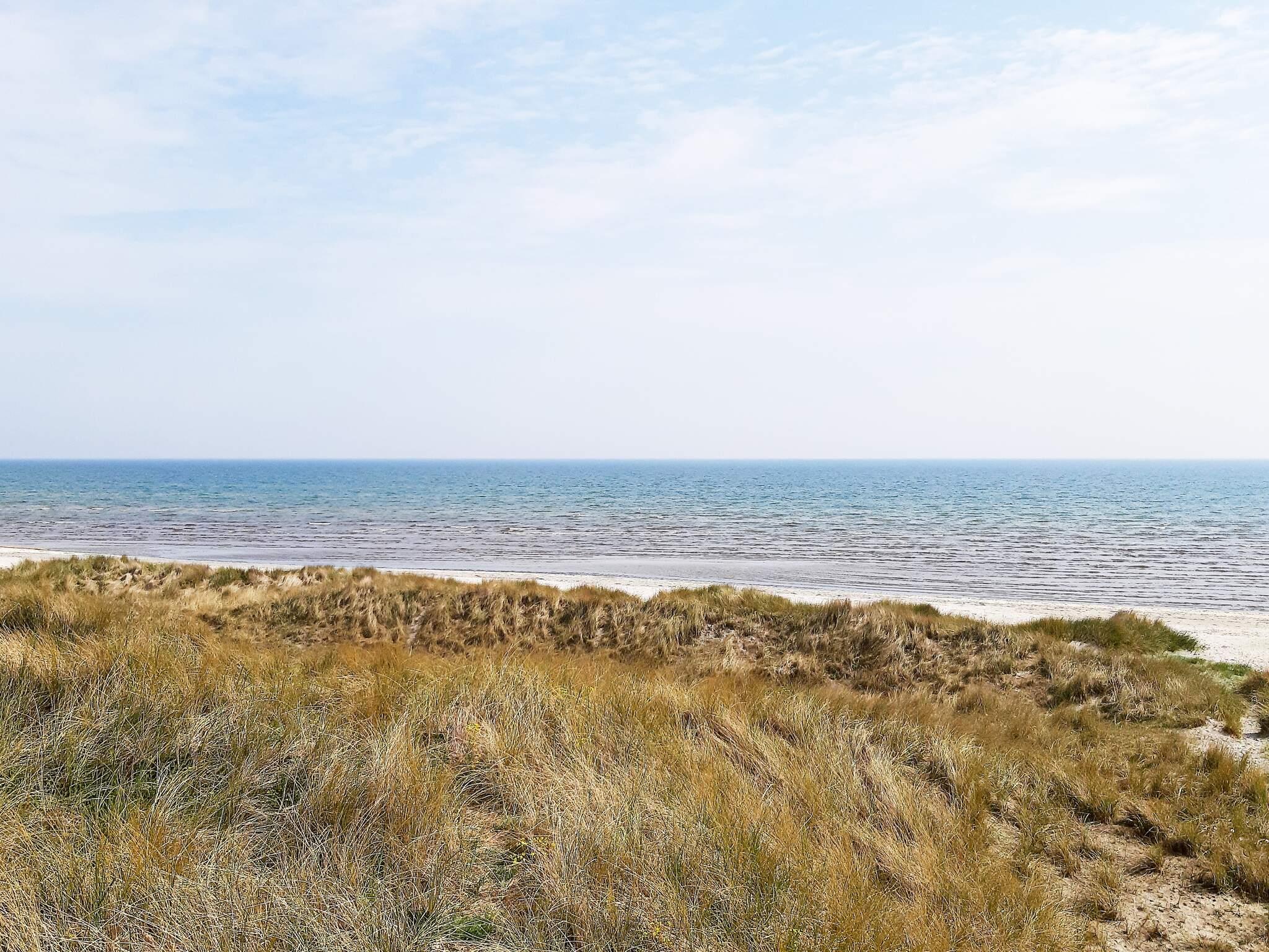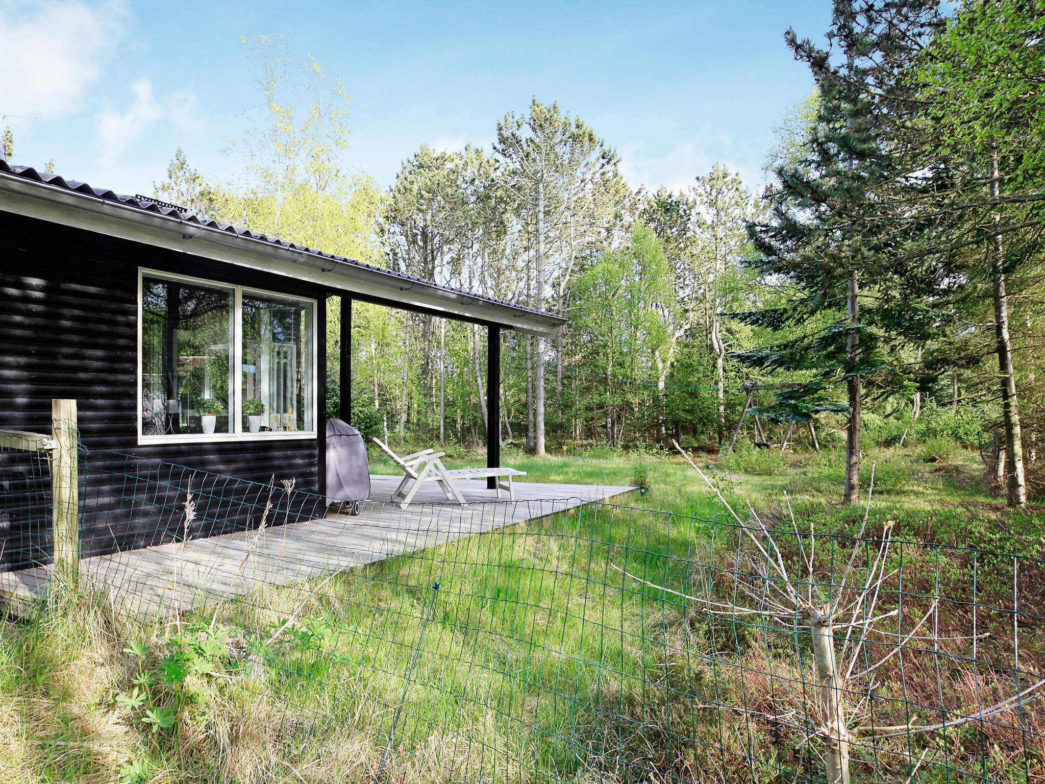Ferienhaus in ruhiger Umgebung bei Napstjert Strand, zu dem Sie freien Zugangn über einen kleinen, gemeinschaftlichen Pfad haben. Das helle eingerichtete Haus hat ein geräumiges Bad mit Whirlpool und Sauna für Wellness und Erholung. Im offenen Küchen-/Wohnbereich gibt es eine Sitzecke mit TV und Holzofen für kühlere Abende. Vom Sofa aus können Sie die Aussicht auf die umliegende Natur durch die großen Fenster hindurch genießen. Das Naturgrundstück ist eingezäunt.