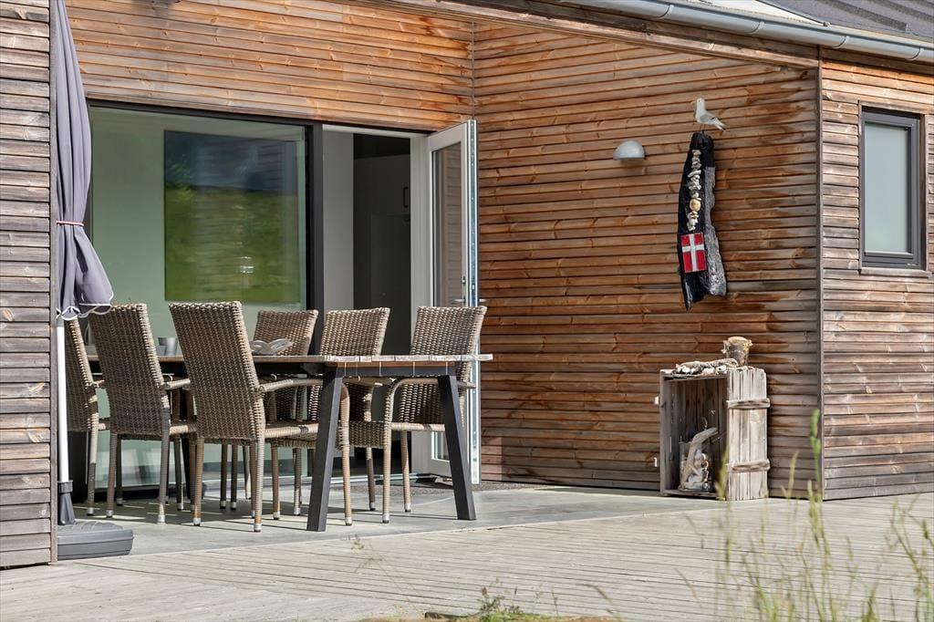 Auf der großen Terrasse, die den Großteil des Tages in der Sonne liegt, können Sie wunderbar frühstücken oder abends grillen. Das Ferienhaus liegt auf einem abgeschirmten Naturgrundstück, das reichlich Platz für Spiel und Entspannung bietet – mit Vogelgezwitscher und vielleicht einem Reh als leise Gäste. Ob in der Sonne oder im Schatten, hier findet jeder seine Lieblingsstelle für pure Ferienidylle und Entschleunigung unter freiem Himmel.