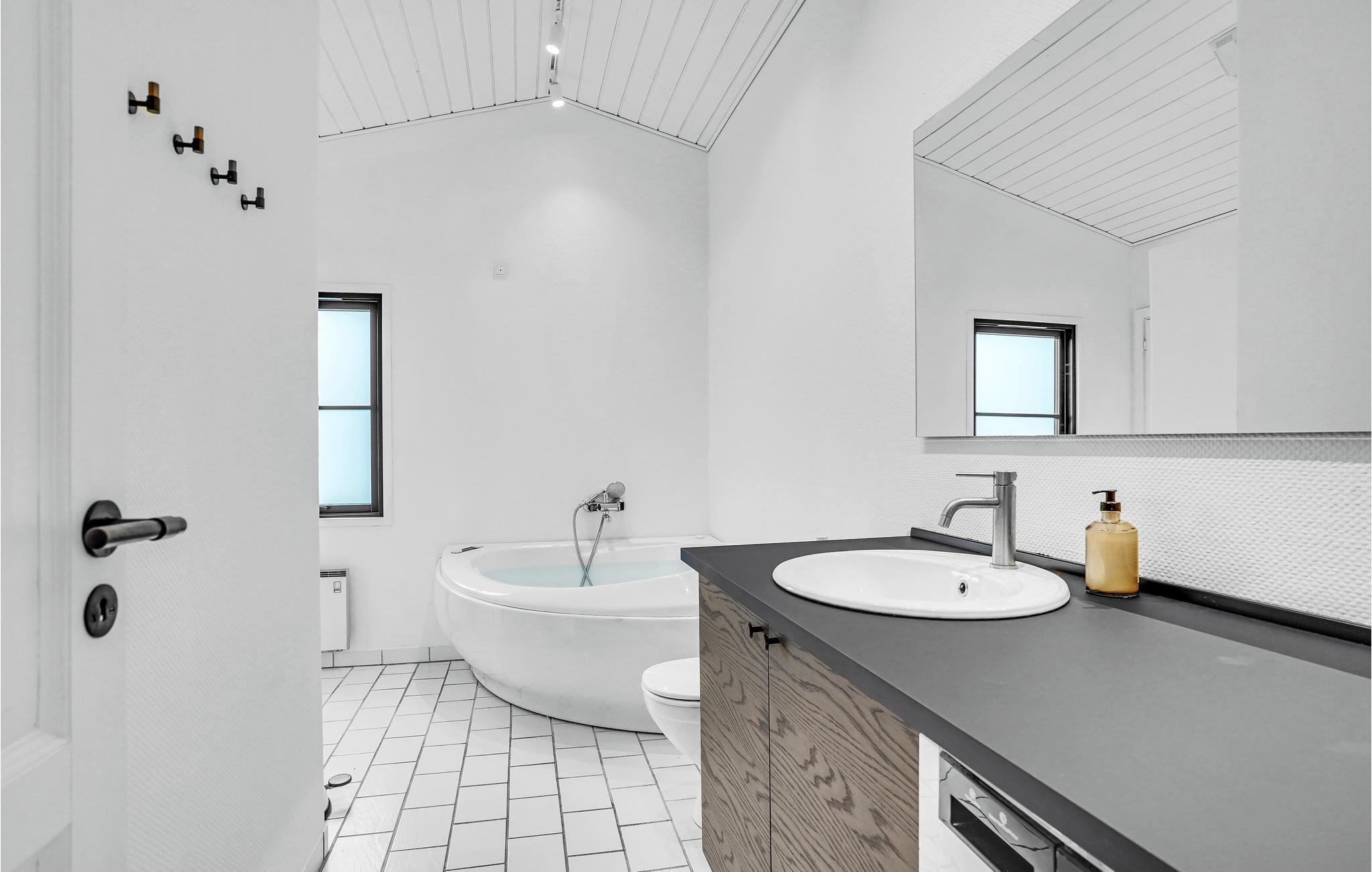 Südlich von Skagen und in der Nähe des gemütlichen Fischerdorfes Ålbæk liegt dieses Ferienhaus auf einem schönen Grundstück mit Aktivitätsmöglichkeiten für die ganze Familie. Der Küchenbereich steht in Verbindung mit dem Wohnzimmer, das mit guten Möbeln eingerichtet ist. Dies macht das Haus für 2 Familien geeignet. Das Badezimmer verfügt sowohl über einen Whirlpool als auch über eine Sauna.