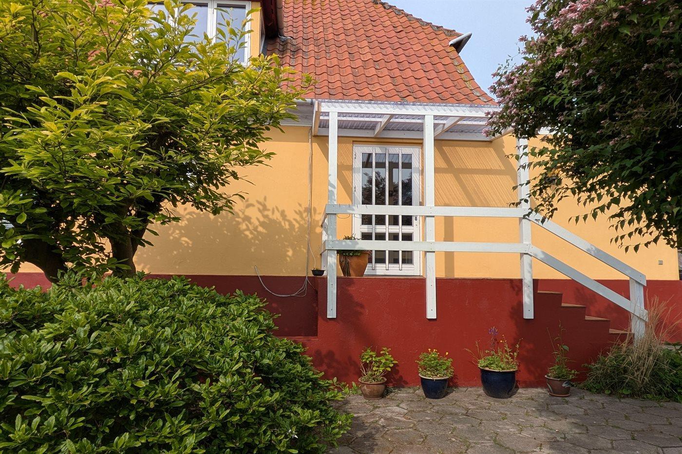 Komfortables Ferienhaus mit Meerblick und großem Garten in Årsdale, ideal für entspannte Urlaubstage.