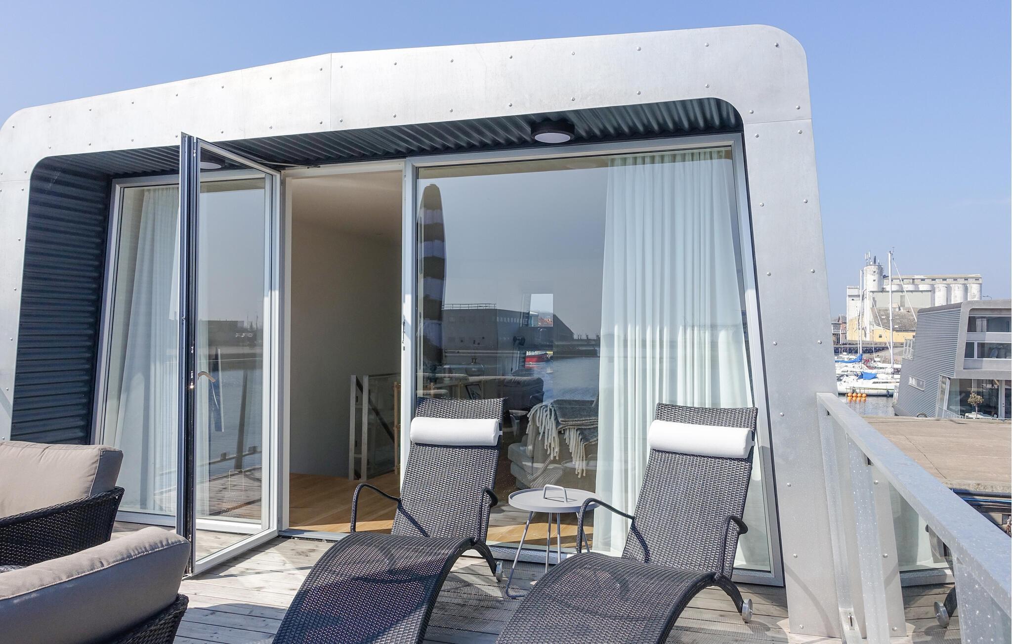 Modernes Hausboot in Nexø mit Terrasse und Meerblick für entspannte Urlaubstage.