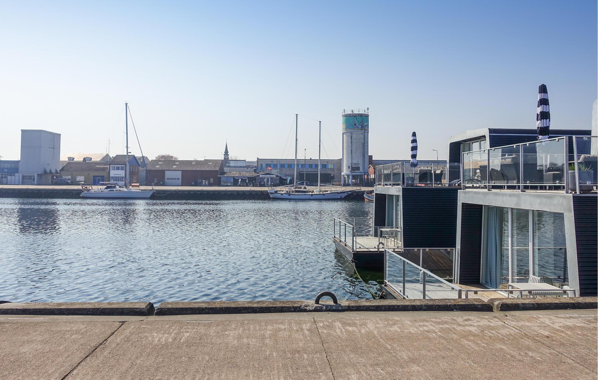 Modernes und gemütliches Hausboot in Nexø mit Terrasse, Meerblick und voll ausgestatteter Küche für entspannte Urlaubstage.