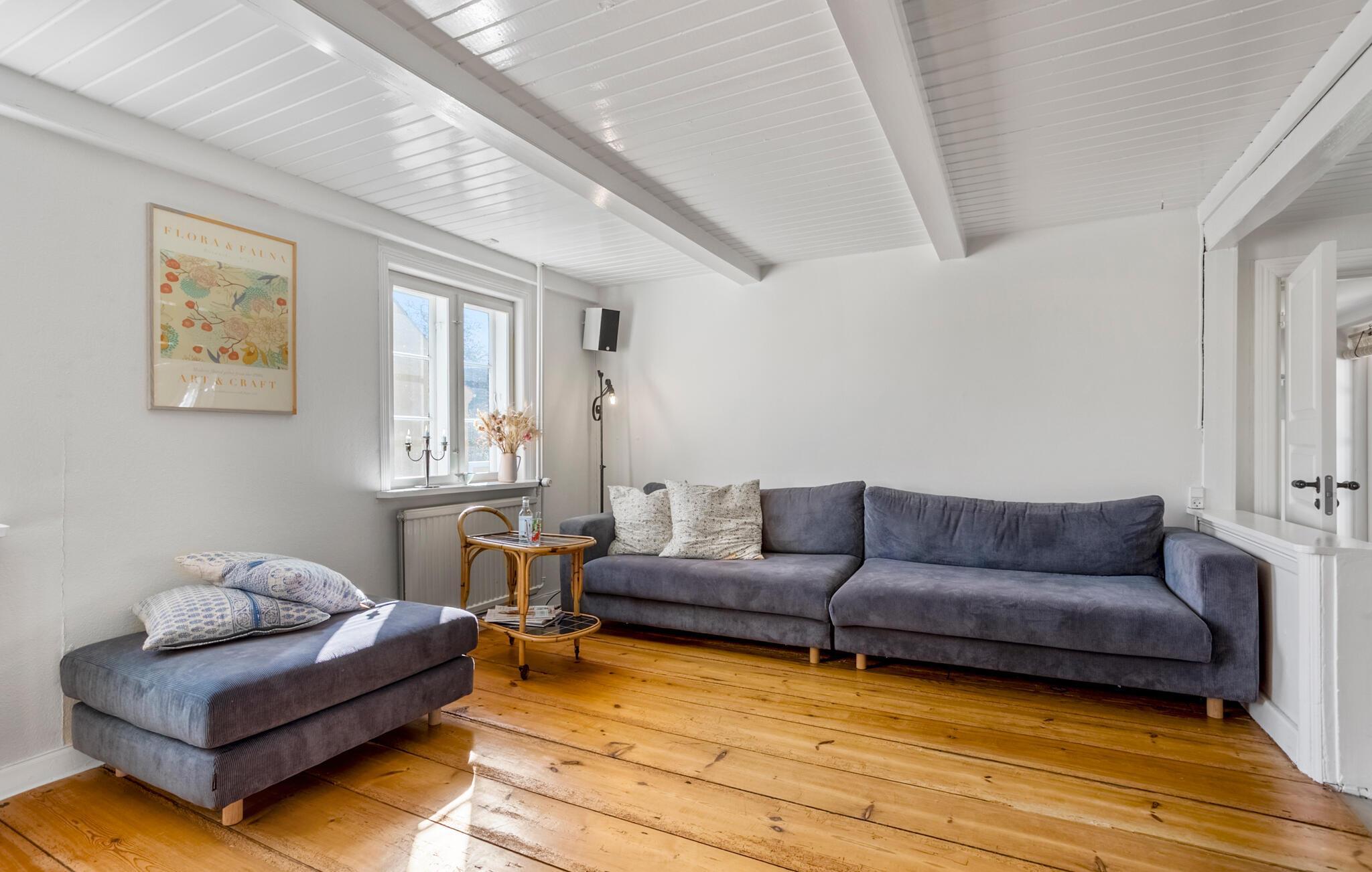 Dieses Ferienhaus bietet Ihnen eine charmante Mischung aus Tradition und individuellem Stil. Machen Sie es sich in den heimelig eingerichteten Räumen gemütlich. Entspannen Sie auf dem großen Sofa, schmökern Sie in einem Buch oder genießen Sie einfach eine ruhige Pause. Die Einrichtung mit Holzböden, hellen Wänden und passenden Farbakzenten schafft eine warme, persönliche Atmosphäre. Nehmen Sie Ihre Mahlzeiten am langen Esstisch ein oder frühstücken Sie in der schönen Küche, die durch zahlreiche liebevolle Details überzeugt. Auch auf dem Schlafboden lässt es sich gemütlich verweilen. Oder gehen Sie die Treppe hinauf in das Obergeschoss des Hauses, genießen Sie von dort den Meerblick und lassen Sie sich vom Licht der Ostsee verzaubern.