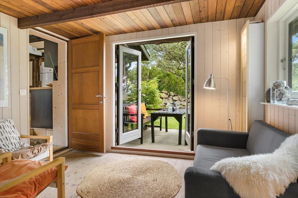 Dein Ferienhaus liegt auf einem großen Naturgrundstück unterhalb des höchsten Punktes der Insel, der eine grandiose Aussicht bietet. Völlig ungestört verbringst du deinen Urlaub zwischen Bäumen und sanften Hügeln. Vor dem Haus erwartet dich eine große Grasfläche, auf der eine Picknickgarnitur zum Entspannen und zum Genießen der wunderschönen Aussicht einlädt. An das Haus schließen zwei Terrassen. Auf der Nordwestterrasse blickst du abends auf prachtvolle Sonnenuntergänge. Die zweite Terrasse erwartet dich an der Ostseite. Sie ist teilweise überdacht und durch das Haus gut vor Wind geschützt. Hier kannst du dich mit deinen Lieben selbst nach Sonnenuntergang oder auch an nicht ganz so schönen Tagen wunderbar aufhalten. Vom Haus führt ein kleiner Pfad hinunter an das Meer. Alternativ kannst du den öffentlichen Weg nutzen, der vom Ballebjergtårnet direkt an den Strand führt. Dein Ferienhaus ist über einen privaten Schotterweg erreichbar, der nur von deiner Familie und den Nachbarn genutzt wird. Ringsum erwarten dich also ausschließlich herrliche Ruhe und wunderschöne Naturerlebnisse.