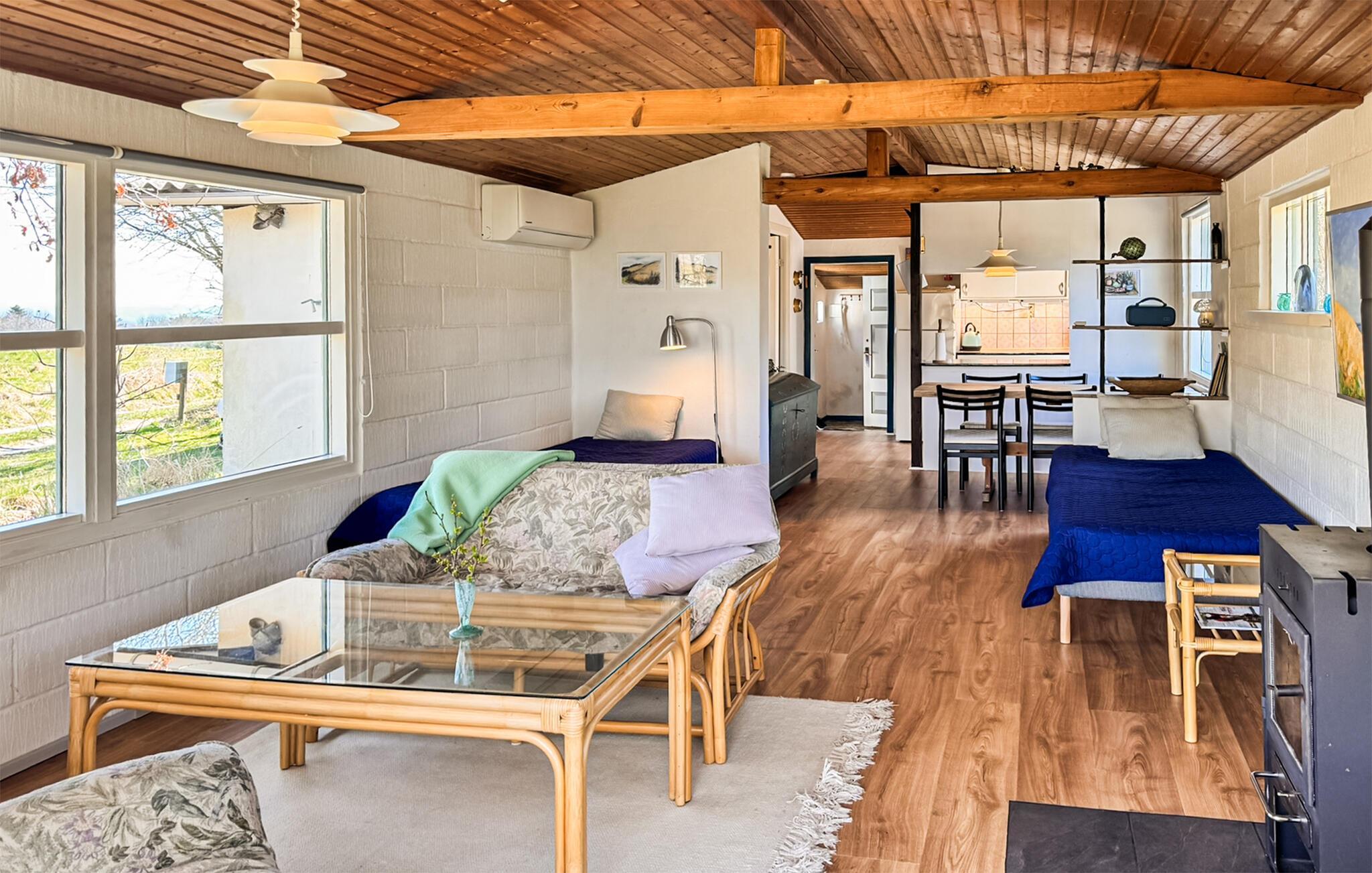 In diesem Ferienhaus, das seine Gäste auf der Nordinsel erwartet, ist alles darauf ausgerichtet, dass Sie hier eine schöne gemeinsame Zeit mit ihren Lieben verbringen können. In der offenen Küche können Sie nach einem erlebnisreichen Tag gemeinsam die Mahlzeiten zubereiten und verspeisen, bevor Sie es sich zusammen im angrenzenden Wohnbereich bequem machen, dem Prasseln des Feuers im Kaminofen lauschen und den Tag auf angenehme Weise ausklingen lassen.