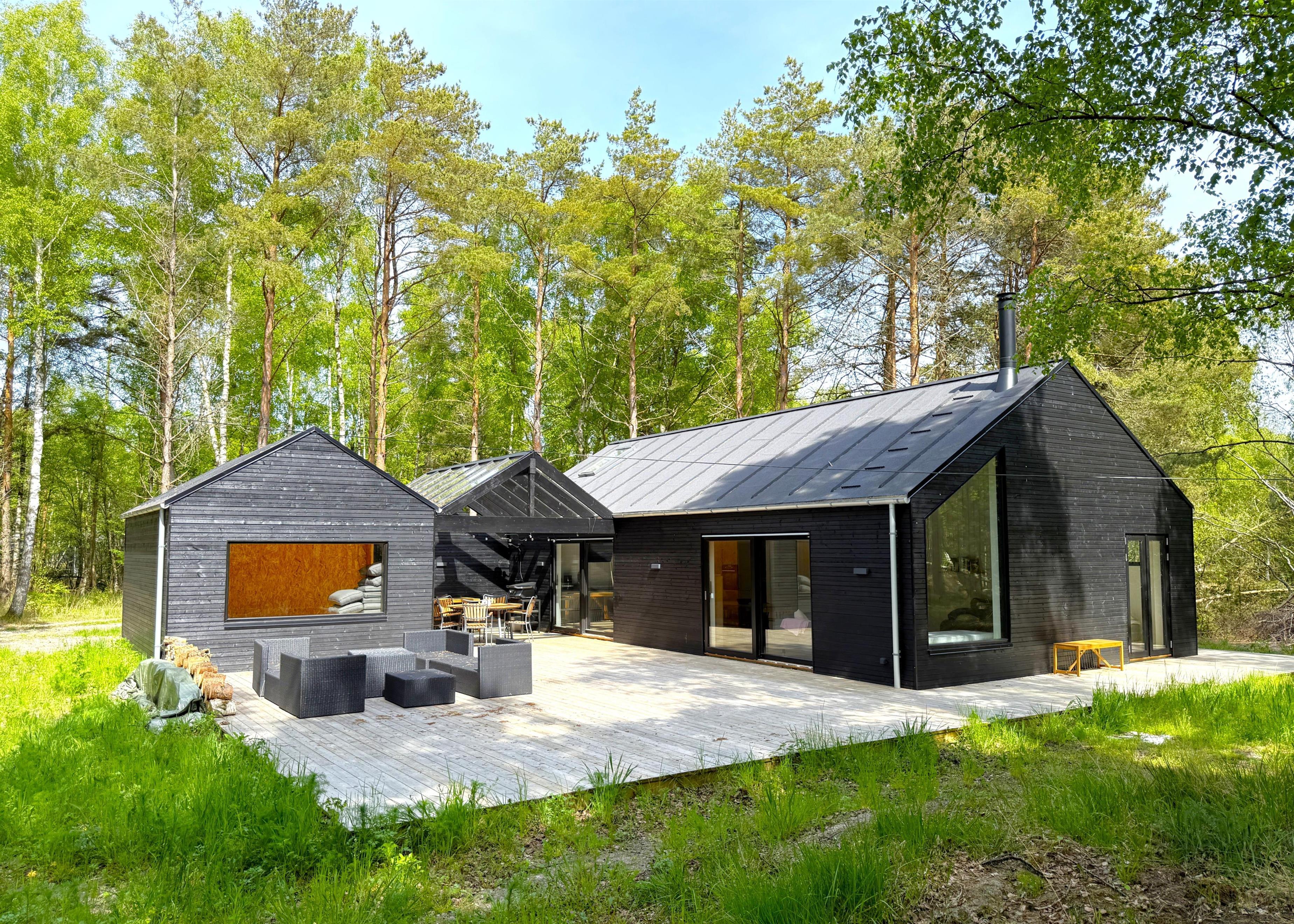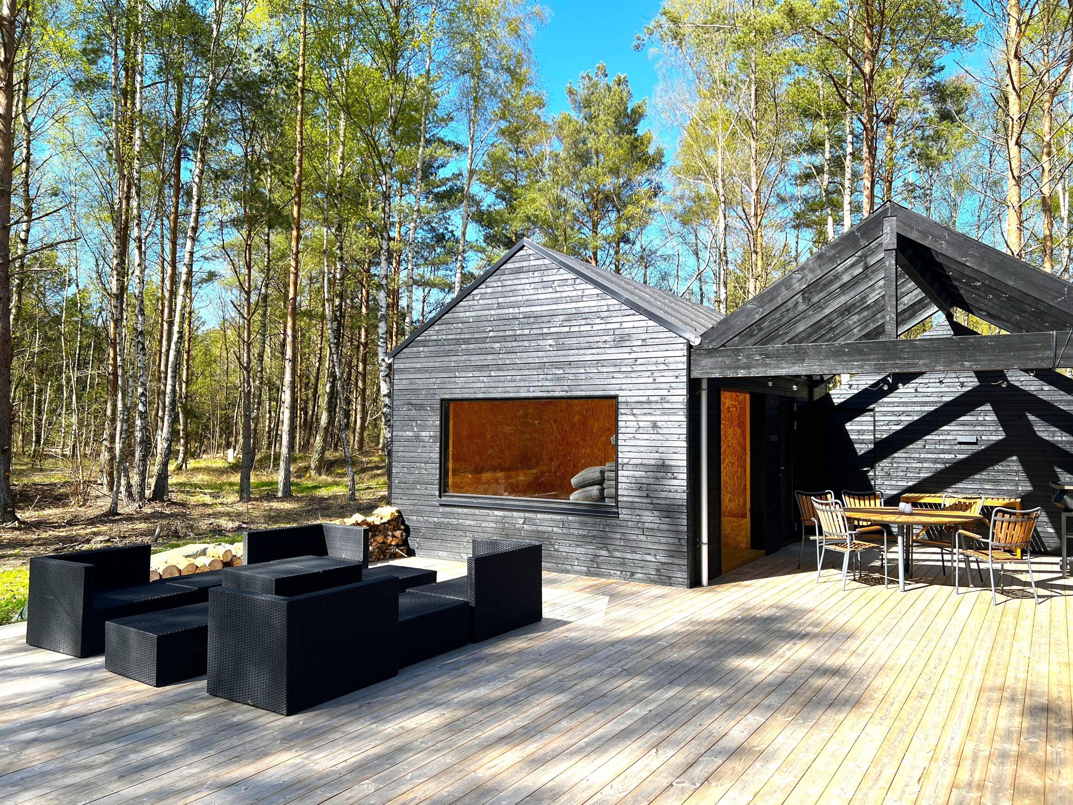 NEU beim Team Læsø. Dieses neue, schöne, vom Architekten entworfene Ferienhaus wurde gerade mitten in der wunderschönen Natur Nordmarkens gebaut und fängt genau die richtige Sommerhausatmosphäre ein. Das Haus wirkt besonders einladend, hell und großzügig mit vielen schönen Details und die großen Fenster sorgen für viel Licht und einen wunderbaren Ausblick auf die Natur und den Wald. Es gibt eine schöne Wohnküche mit Kücheninsel und Essbereich in offener Verbindung zum großen Wohnzimmer, in dem auch ein Holzofen installiert ist. Es gibt mehrere gemütliche Ecken, die zum Sitzen mit einem Buch oder einer guten Tasse Kaffee einladen. Darüber hinaus gibt es drei schöne Schlafzimmer, zwei davon mit Doppelbetten und das letzte mit einem Etagenbett und einem 3/4-Bett unten - eigener Ausgang von allen Schlafzimmern. Es gibt ein schönes großes Badezimmer mit Badewanne und Dusche sowie eine gut platzierte zusätzliche Toilette. Im kleinen ersten Stock des Hauses gibt es ein zusätzliches Zimmer mit einem Schreibtisch. Von der Wohnküche gibt es Terrassentüren zur großen Holzterrasse, wo die guten Gartenmöbel und der Grill des Hauses genutzt werden können. In Verlängerung der Holzterrasse befindet sich ein zusätzlicher Anbau, der unter anderem verfügt über einen schönen Unterstand mit großem Fensterbereich. Hier lassen sich die späten Abendstunden verbringen und es ist für Groß und Klein richtig gemütlich. Außerdem gibt es in der Umgebung viele gute Wanderwege und die Entfernung zum Strand und zum Meer ist nicht weit. Die komfortable Einrichtung und Lage des Hauses sorgen für einen schönen, erholsamen Urlaub, bei dem Sie sofort die unverwechselbare Ruhe und einzigartige Natur von Læsø spüren. Gleichzeitig ist das Haus wunderschön und ruhig gelegen, in Fahrradentfernung zum Golfplatz sowie zur gemütlichen Hafenumgebung von Østerby Havn mit Fischhändlern, Einkaufsmöglichkeiten und Restaurants.