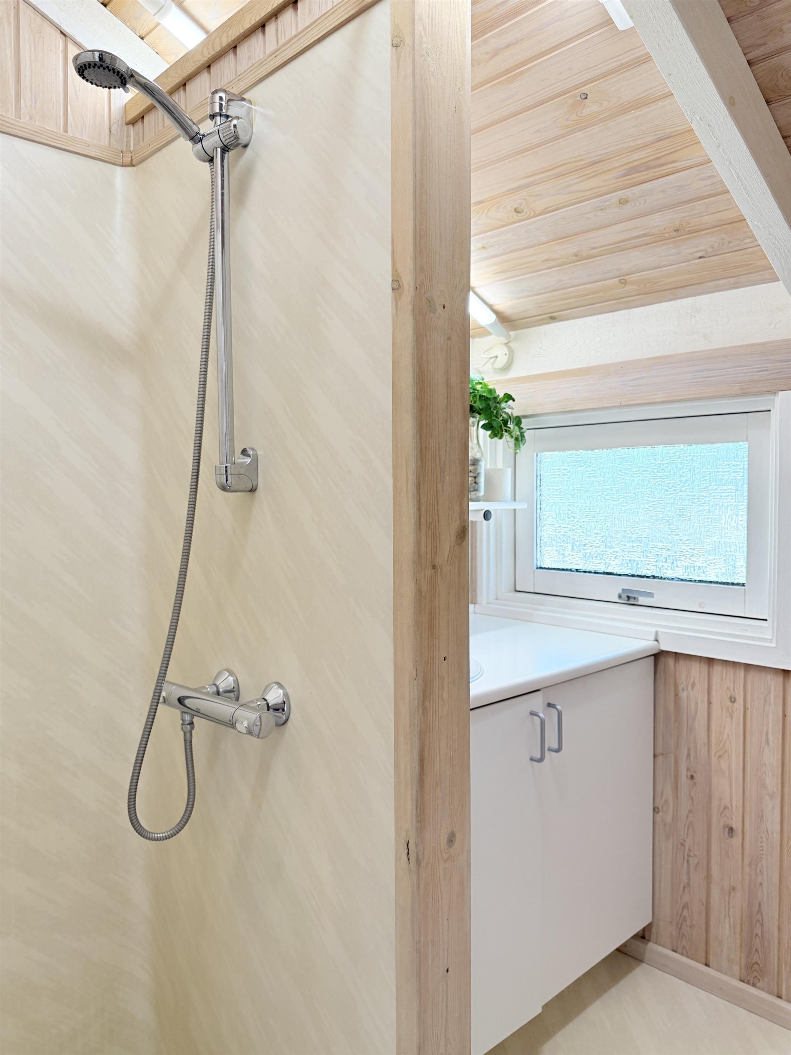 Neues sehr gut gepflegtes funktionell eingerichtetes Sommerhaus mit Platz für 5 Personen. Es hat ein Badezimmer mit Dusche, und 2 Schlafzimmer. Eines mit Doppelbett (140), und eines mit Etagenbett und ein Einzelbett. Grosse Küche mit Essplatz und Wohnzimmer in einem Raum. Direktem Ausgang zur Terrasse. Mit hellen Holzwänden und vielen grossen Fenstern, das eine gemütliche Atmosphähre gibt. Das Sommerhaus liegt in einer wunderschönen Umgebung, das eine gute Ferienstimmung gibt.