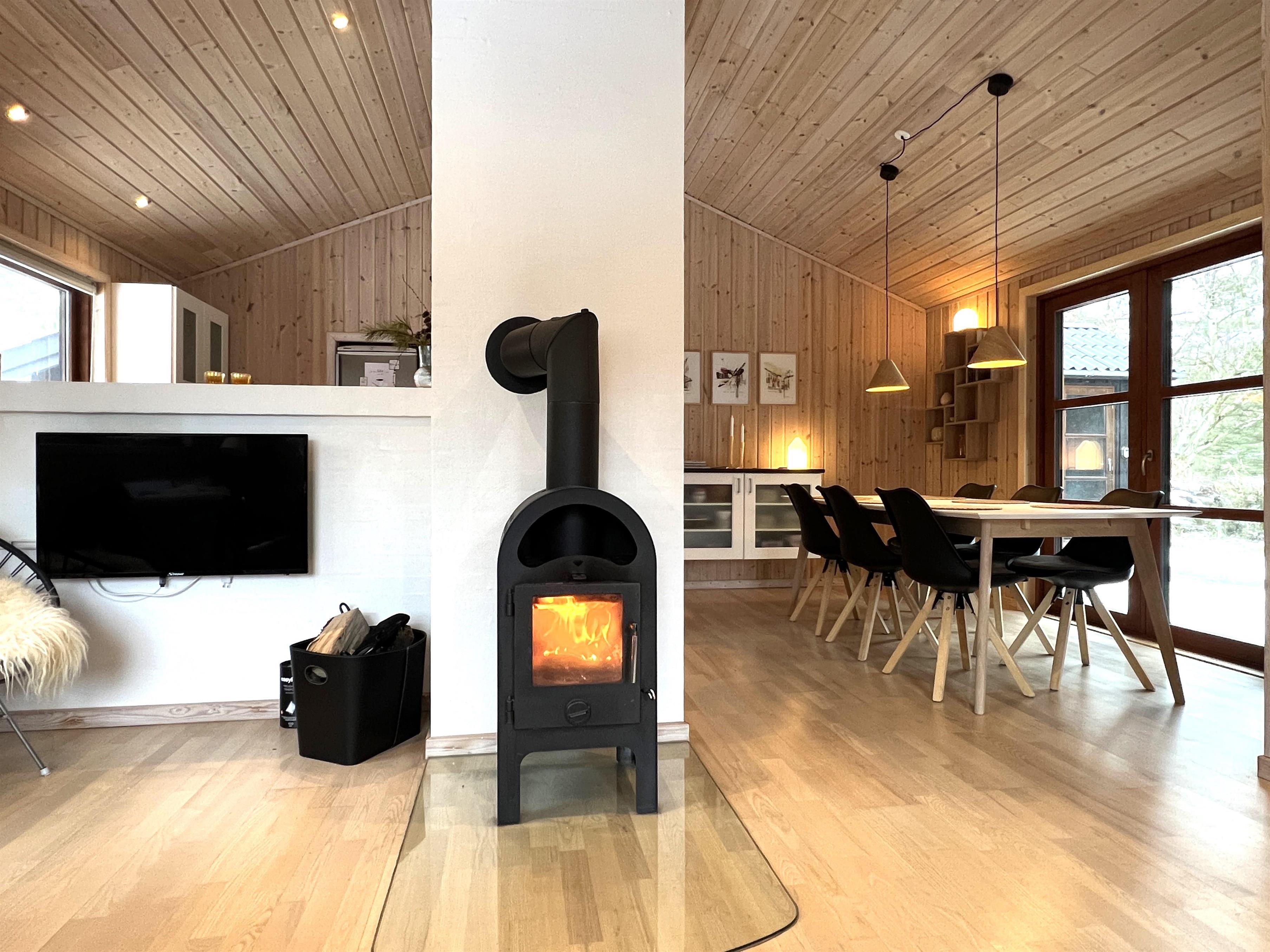 Ein traumhaft schönes und gepflegtes Sommerhaus in landschaftlich reizvoller Lage im Wald- und Heidegebiet Nordmarken. Das Ferienhaus verfügt über eine schöne, große und gut ausgestattete Küche in offener Verbindung zum Esszimmer. Der gesamte Gemeinschaftsbereich des Hauses hat eine schräge Decke und es gibt wirklich schönes Licht. Es gibt ein modernes Badezimmer mit Dusche und Fußbodenheizung sowie drei Schlafzimmer mit Doppelbetten und Kleiderschrank. In der Mitte des Hauses befindet sich das Wohnzimmer mit bequemen Möbeln, einem Holzofen und und ein brandneuer Fernseher. Es gibt deutsches Fernsehen über Satellit und somit eine große Senderauswah. Der Innenraum ist stilvoll mit Möbeln von Danish HAY eingerichtet und sowohl vom Esszimmer als auch vom Wohnzimmer aus gibt es Ausgänge zu großen Holzterrassen mit mehreren Gartenmöbeln und Sonnenliegen. Ein Teil der Terrasse ist überdacht und hier kann der neue, große Gasgrill des Hauses (2023) jederzeit und zu jeder Jahreszeit genutzt werden.Die Fußbodenheizung sorgt für extra lange, warme Abende. Den Morgenkaffee genießt man oft auf der nach Osten ausgerichteten Terrasse des Hauses, wo im August Heidekraut dominiert und fantastisch blüht.