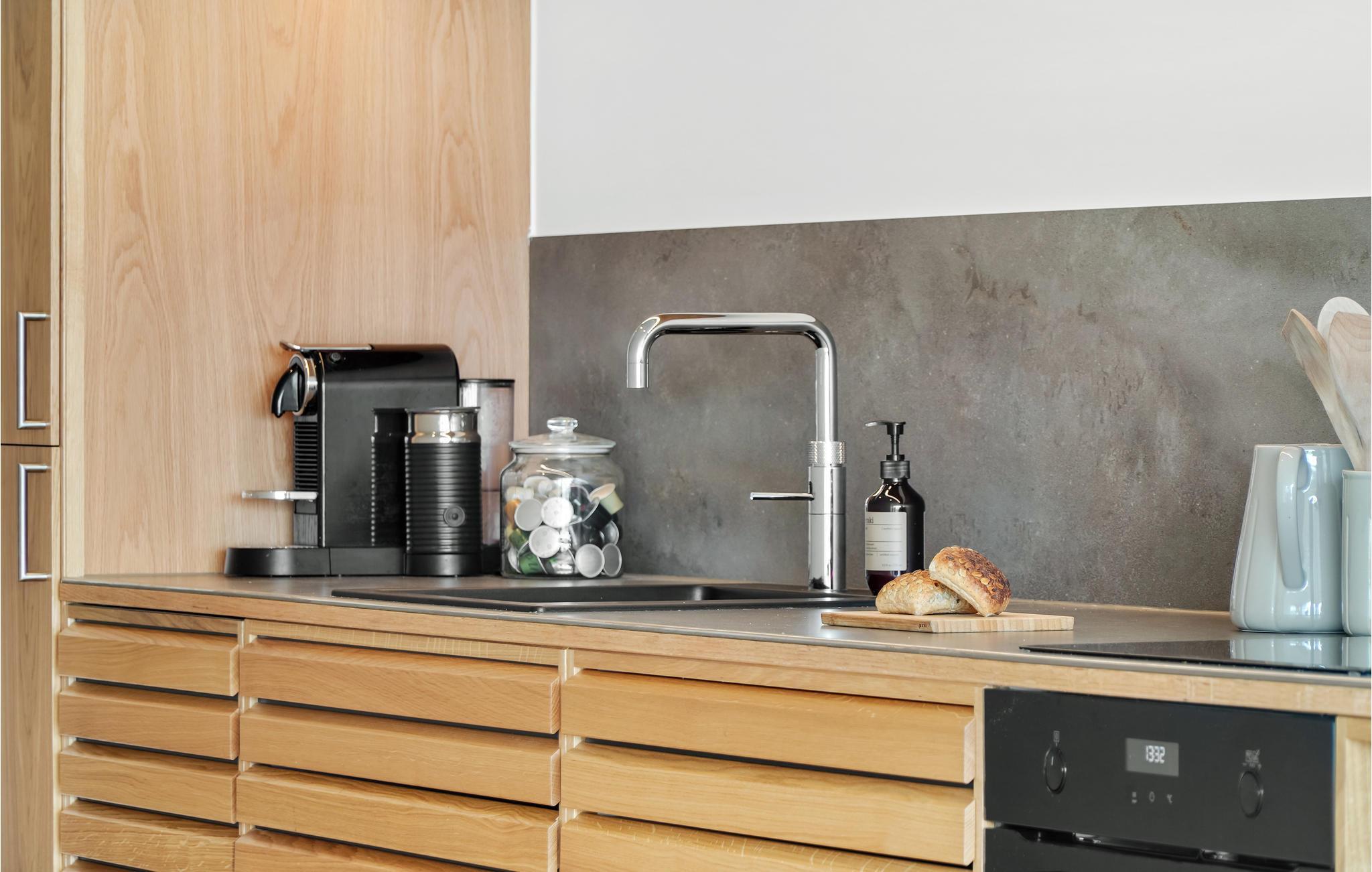 Willkommen in dieser schönen Wohnung, die durchweg mit hochwertigen Lösungen ausgestattet ist. Natürliche Materialien, eine angenehme Farbgebung und viel Licht durch die Fenster sorgen für einen ruhigen und harmonischen Rahmen für Ihren Aufenthalt. Genießen Sie die Gesellschaft der anderen in der offenen Küche, die mit dem Ess- und Wohnbereich verbunden ist. Die Terrassentüren können vollständig geöffnet werden, so dass die Terrasse und das Wohnzimmer eine Einheit bilden. Und das Beste ist, dass man den atemberaubenden Blick auf das blaue Wasser der Bucht genießen kann, während man kocht, sich im Wohnzimmer entspannt oder morgens einen Kaffee auf dem Balkon genießt.