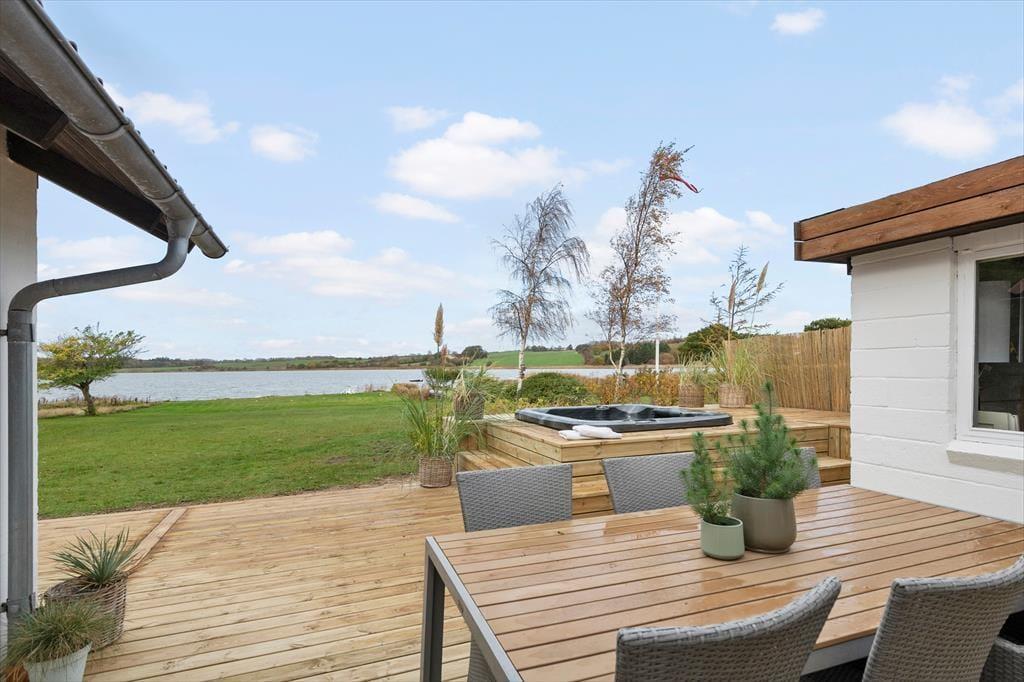 Auch draußen setzt sich das Urlaubsgefühl fort. Auf der Terrasse hast du viel Platz für Mahlzeiten an der frischen Luft, eine ruhige Lesepause oder einfach dafür, das wechselnde Licht über dem Wasser zu beobachten. Der Fjord liegt nur wenige Schritte entfernt und bringt die Natur ganz nah – selbst im Sitzen. Mit Gartenmöbeln und Grill ist alles bereit für lange Abende, in denen Zeit keine Rolle spielt, sondern nur das Gefühl des Augenblicks zählt. Vielleicht endet der Tag im Gespräch, vielleicht in Stille. Beides passt wunderbar hierher.