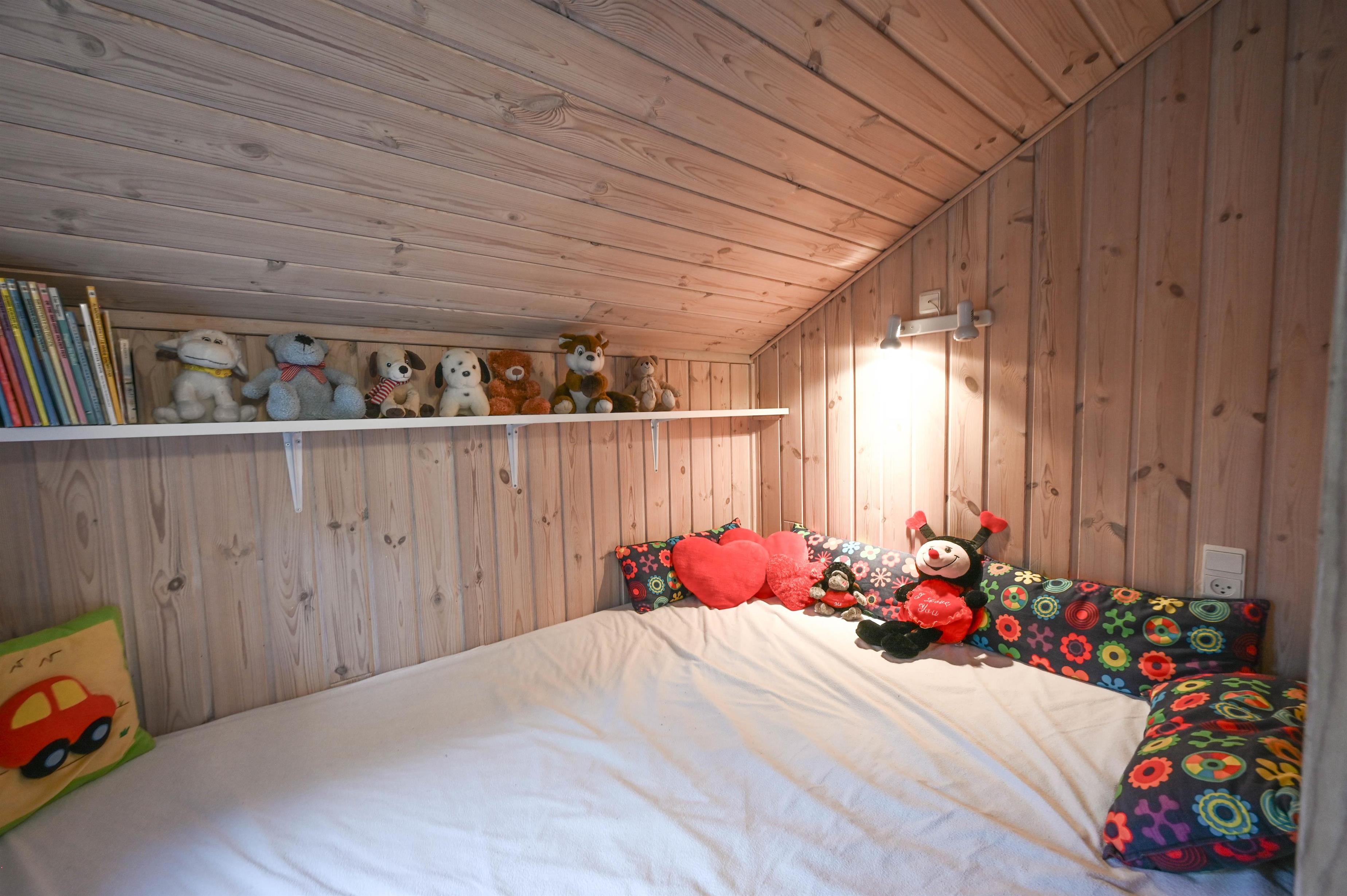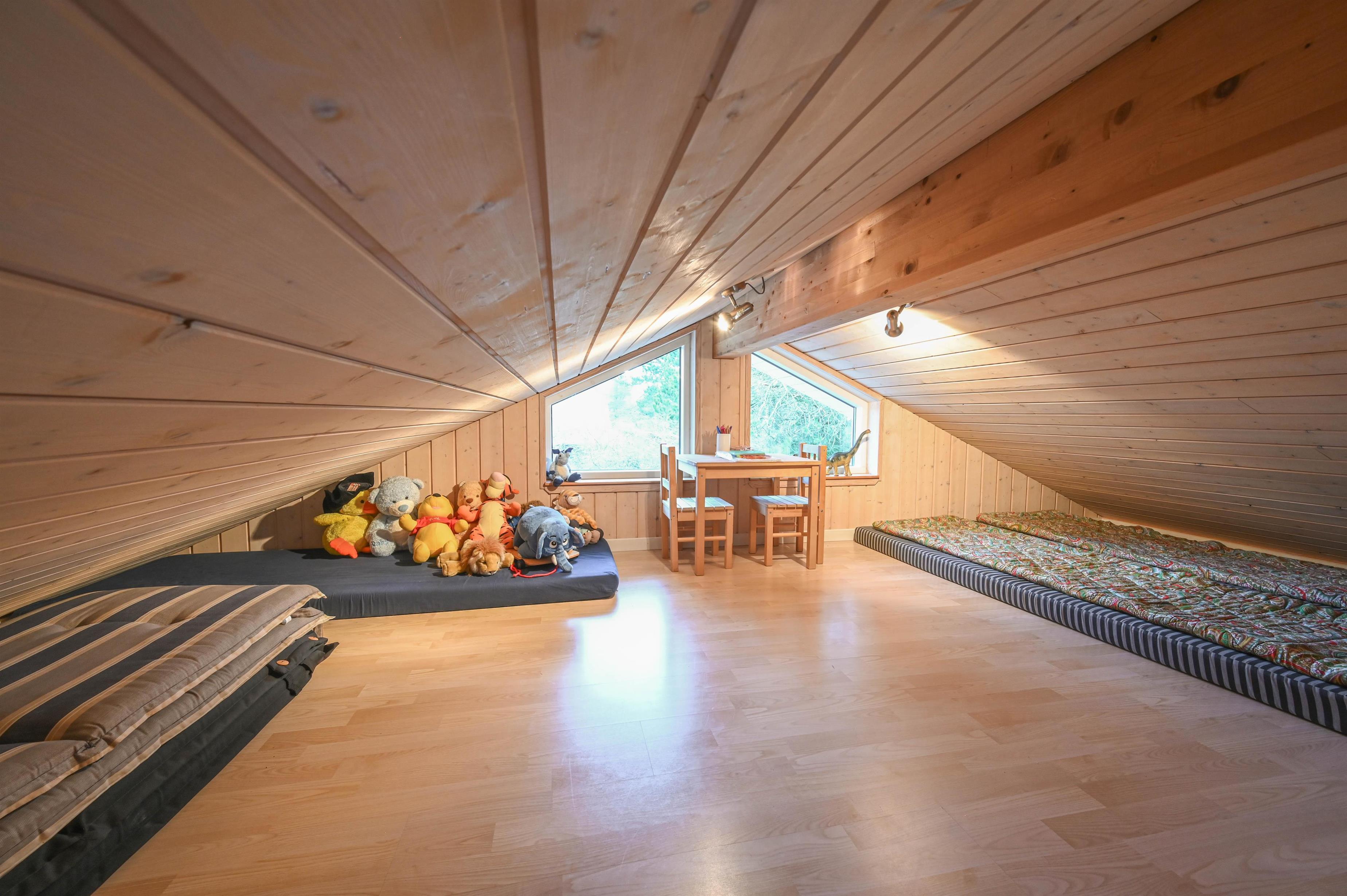 Draußen gibt es eine große Rasenfläche, auf der die Kinder herumtollen und auf die kleinen Fußballtore schießen können. Das Haus ist umgeben von einer schönen, großen Holzterrasse. Hier findet Ihr jederzeit ein gemütliches Eckchen in der Sonne, dem Schatten oder in einer windgeschützten Ecke, je nachdem, was ihr gerade wünscht.