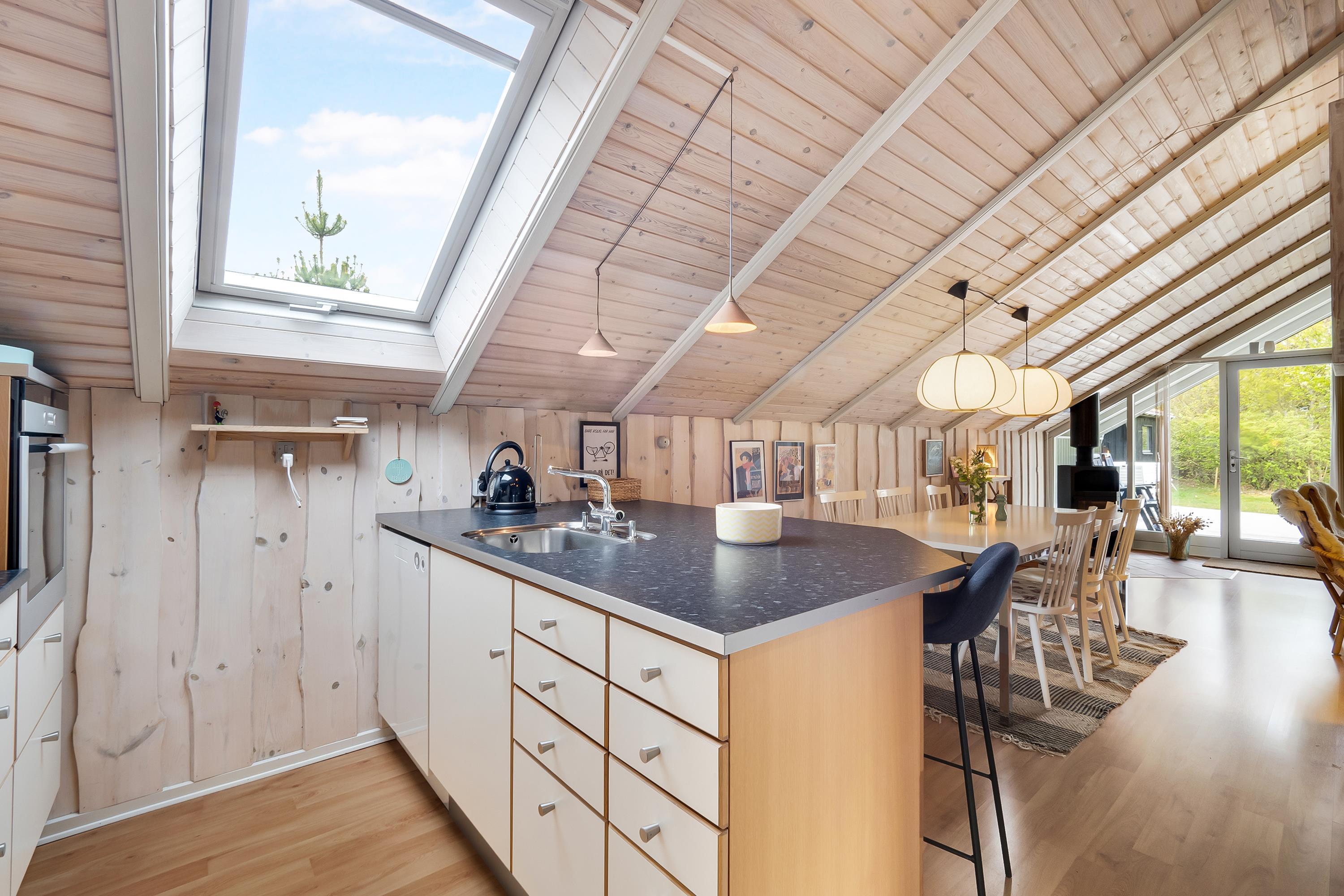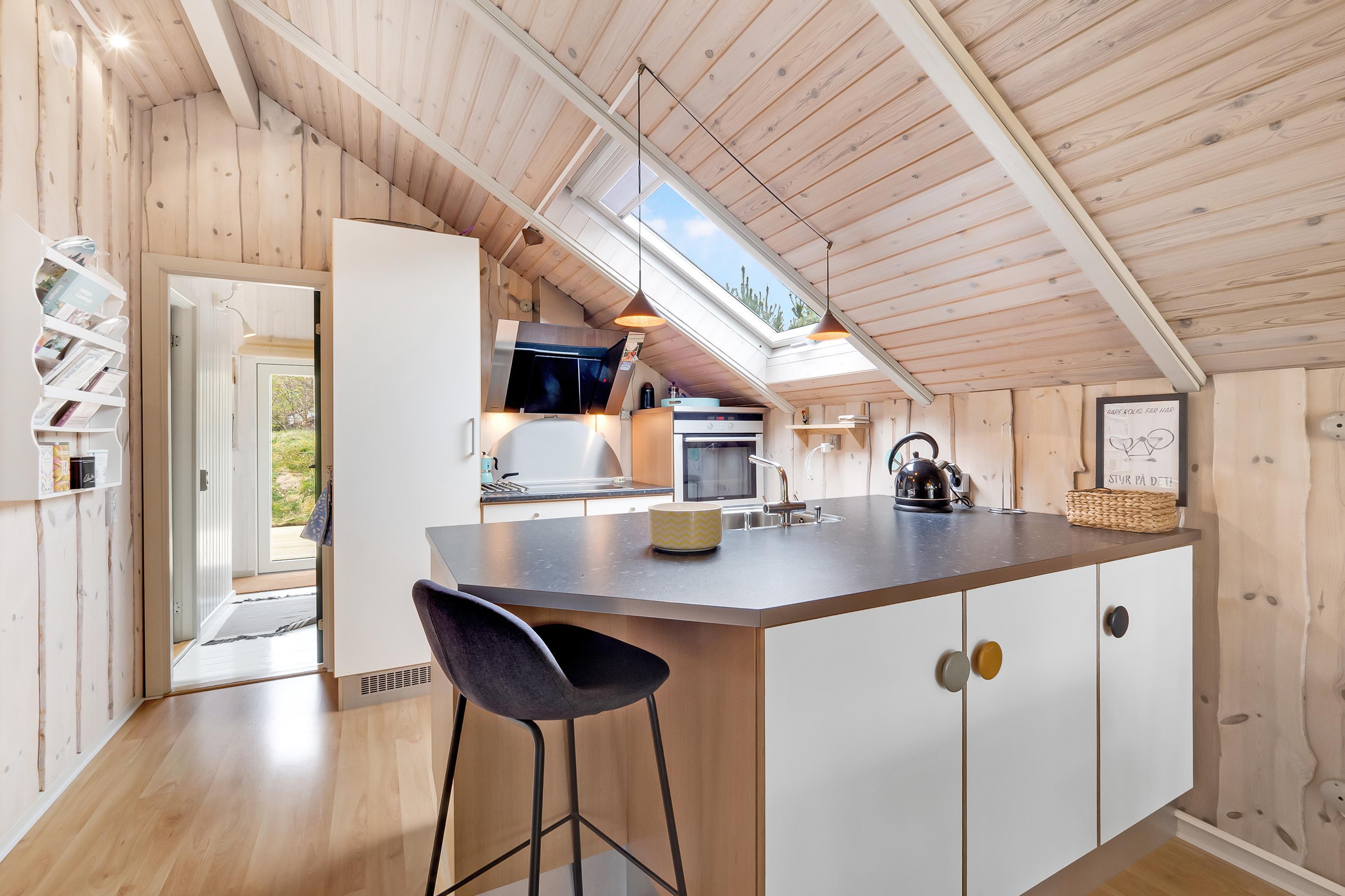 Hier wohnt ihr nahe am Fjord. Nur 500 m sind es bis zum Sandholm Havn, dem idyllischen Jollenhafen. Hier könnt ihr an verschiedenen süßen Sandbuchten im seichten Wasser des Nissum Fjords baden. Gute Schwimmer nutzen gerne die Bucht mit Badebrücke, da seid ihr schneller im Tiefen. Der 70 km lange Wanderweg "Rund um den Nissumfjord" führt direkt hier vorbei – vielleicht habt ihr Lust ein Stück darauf zu spazieren? Euer Ferienhaus hat 67 qm Wohnfläche, das Grundstück misst 1.000 qm. Die herrliche Holzterrasse ist zum Teil überdacht und im Wohnzimmer habt ihr bodentiefe Fenster, die schön viel Licht hereinlassen.