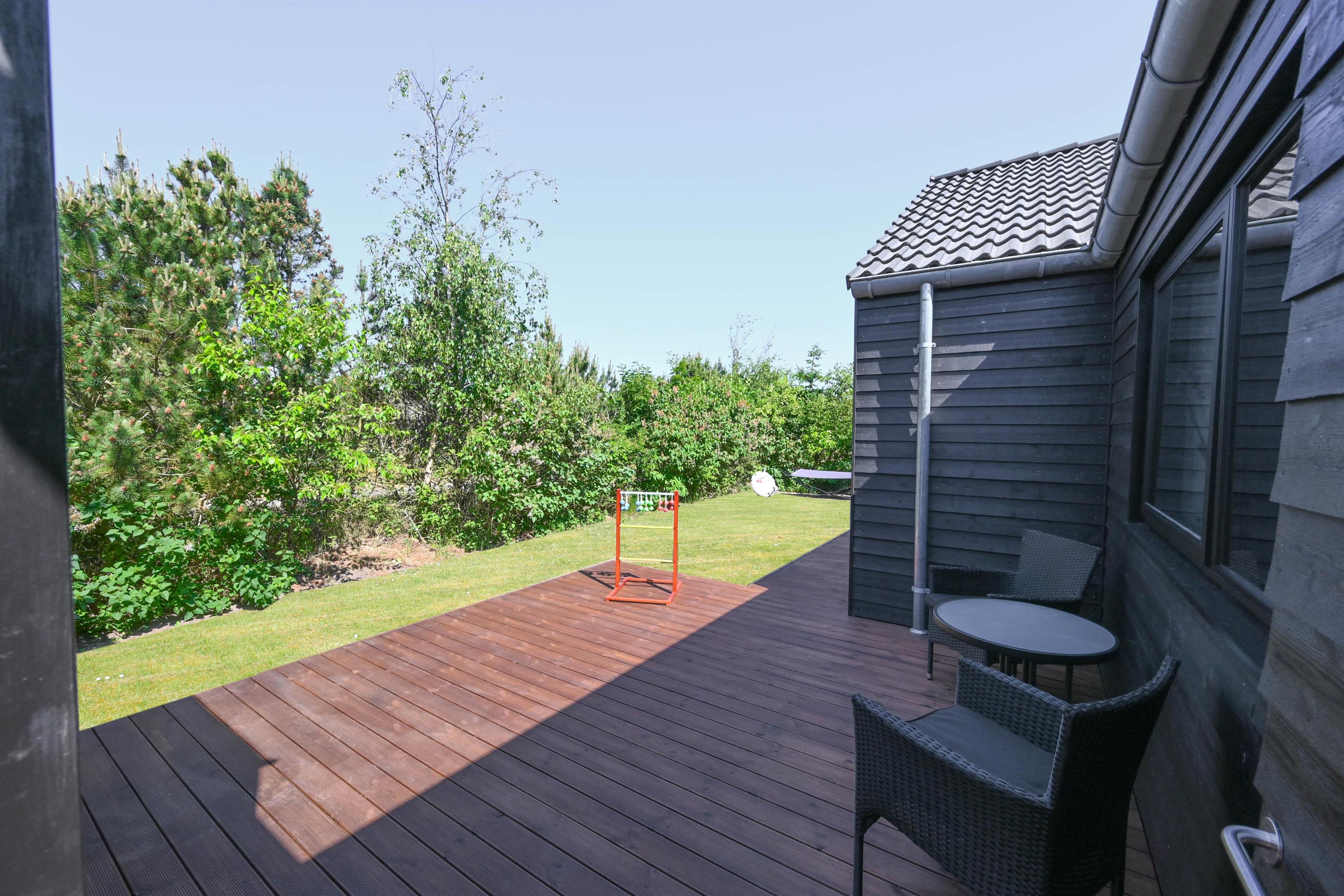 Rund um das Haus befinden sich mehrere schöne Terrassen – darunter eine gemütliche Lounge-Ecke – sowie ein eingebautes Trampolin, das besonders bei Kindern beliebt ist. Hier könnt ihr draußen kochen, gemeinsam essen und die langen Sommerabende in ruhiger Umgebung genießen.