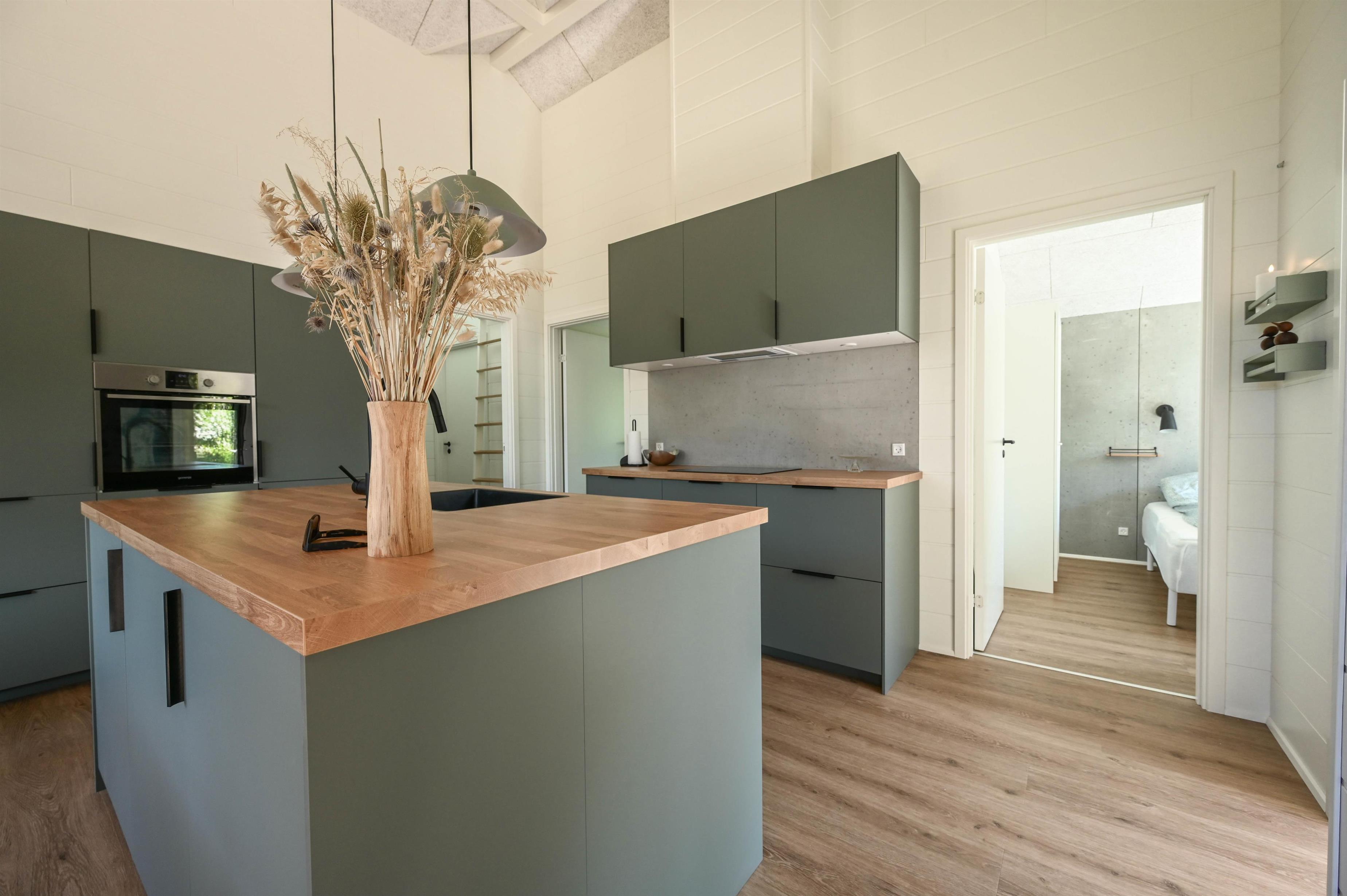 Der große Küchen- und Wohnbereich ist das Herzstück des Hauses – mit viel Licht, Platz und einer warmen, einladenden Atmosphäre. Die Küche ist gut ausgestattet, und vom Wohn-/Essbereich führt der direkte Zugang auf mehrere Terrassen, auf denen ihr die Sonne oder gemeinsame Mahlzeiten im Freien genießen könnt.
