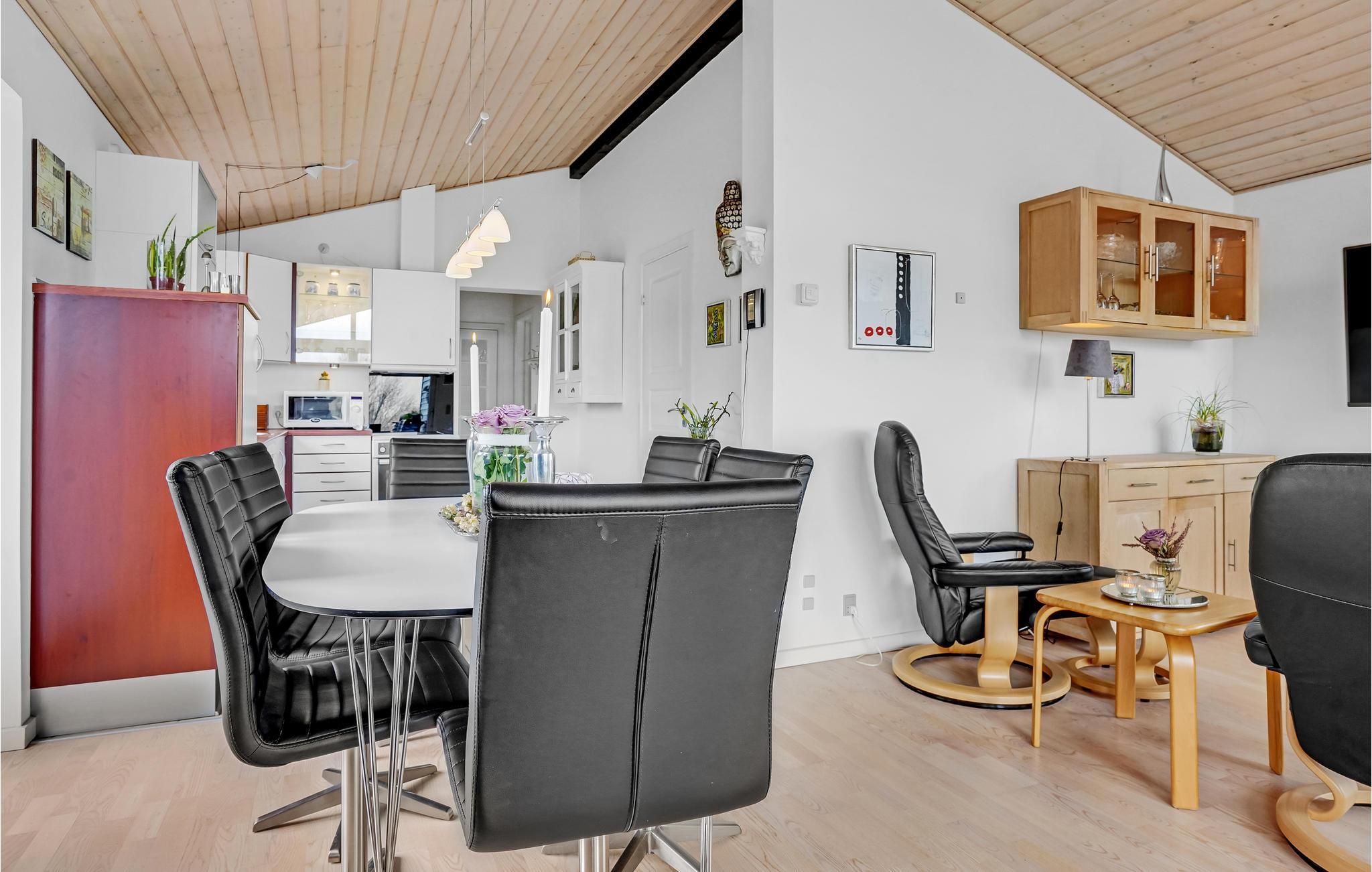 Dieses sehr geschmackvoll eingerichtetes friedliches Ferienhaus bietet Ihnen und Ihrer Begleitung einen gemütlichen Wohnraum mit viel Potenzial für schöne Morgende und Abende mit der Familie, so gibt es einen großen Esstisch für Brettspiele und einen Kaminofen um den Tag ausklingen zu lassen. Auf Ihrer offenen Terrasse können Sie den frischen Fisch auf dem Grill brutzeln lassen während Sie sich den Sonnenstrahlen hingeben und die Frischluft einatmen.