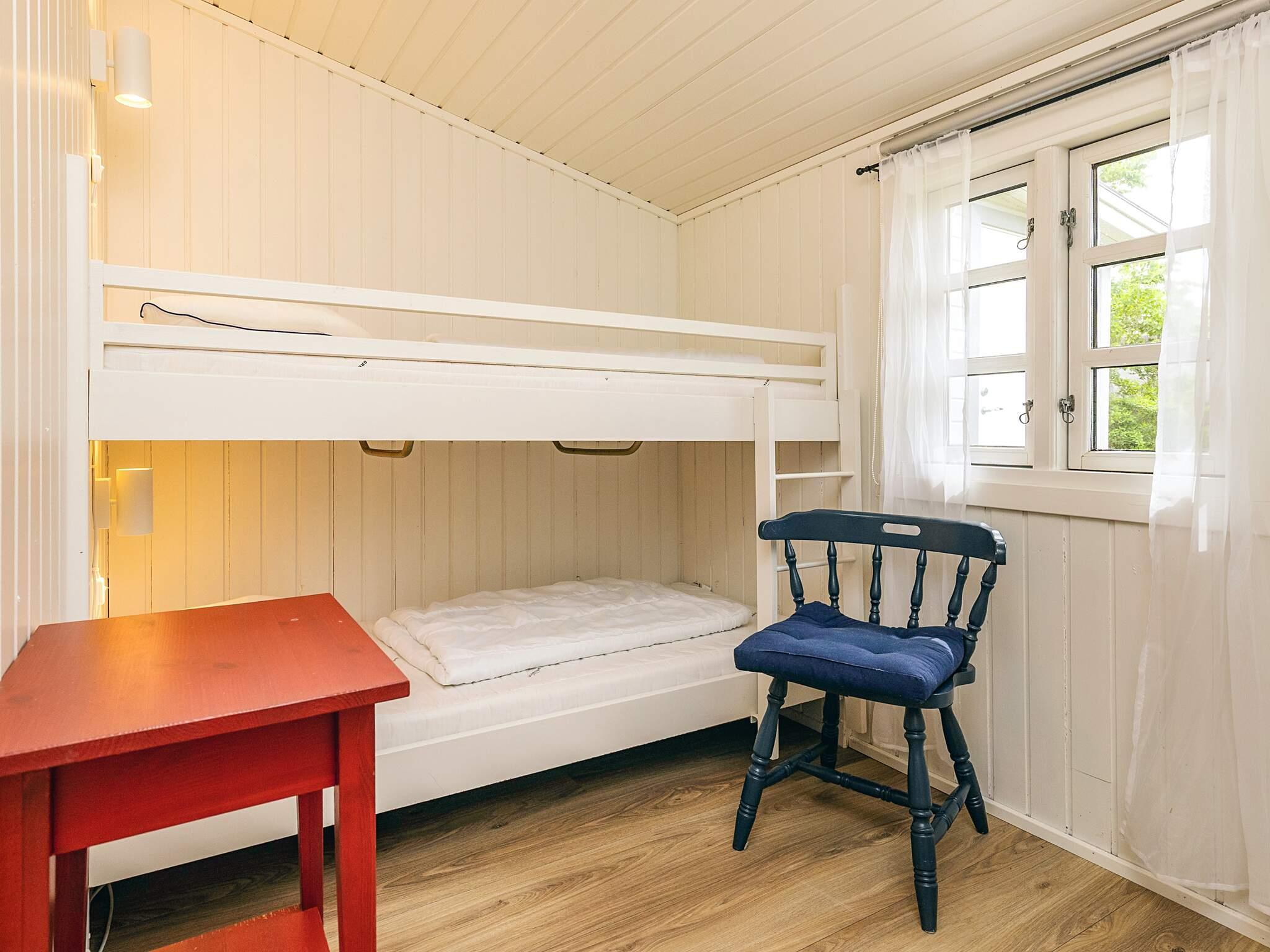 Das Haus bietet eine helle, offene Wohnküche, ein Schlafzimmer mit zwei Betten und ein kinderfreundliches Zimmer mit Etagenbetten. Im Wohnzimmer lässt sich das Sofa leicht in ein Doppelbett umwandeln, sodass bis zu sechs Gäste übernachten können. Es gibt außerdem einen separaten Anbau mit Dusche, Waschbecken und Waschmaschine – perfekt für die praktischen Bedürfnisse des Urlaubslebens.