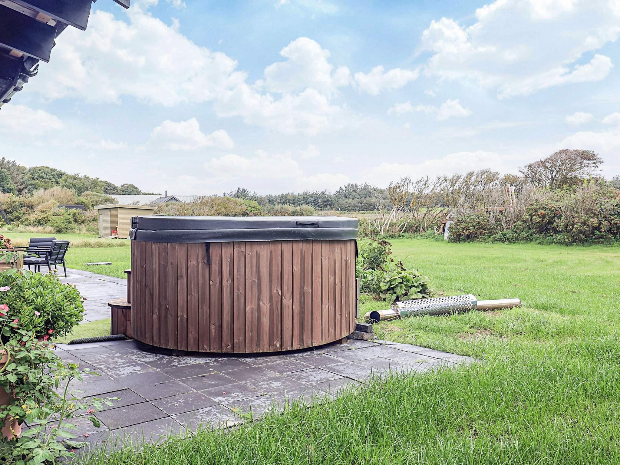 Im Außenbereich gibt es eine schöne Terrasse mit Gartenmöbeln, auf der Sie die Sonne genießen, grillen und ganz ungestört die Ruhe und Natur genießen können. Auf der Terrasse steht ein Badezuber für Entspannung bereit. Es gibt auch eine große überdachte Terrasse. Das Grundstück bietet gute Möglichkeiten zum Spielen und Entspannen und in einer Ecke des Grundstücks steht ein Shelter zur freien Verfügung.