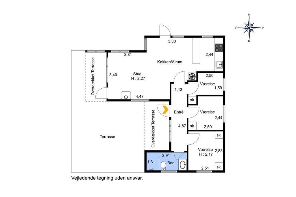 Nr. Lyngby liegt zwischen dem beliebten Badeort Løkken und dem kleinen Künstlerdorf Lønstrup, wo Sie eine Menge Kunstwerkstätten, gemütliche Cafés und Restaurants, und den ganzen Sommer über viel Leben und frohe Feriengäste finden. Der breite Strand von Nr. Lyngby hat den feinsten Sand und lädt zum Baden und zu langen Strandspaziergängen ein. Nr. Lyngby ist allerdings auch bekannt für seine atemberaubende Steilküste, welche an manchen Stellen bis zu 40 Meter hoch ist. Nur wenige Kilometer nördlich von Ihrem Ferienhaus kann man die große Wanderdüne Rubjerg Knude besteigen. Wer oben angekommen auch noch die Stufen des alten Leuchtturms erklimmt, der wird mit einem herrlichen Blick über die Jammerbucht belohnt.