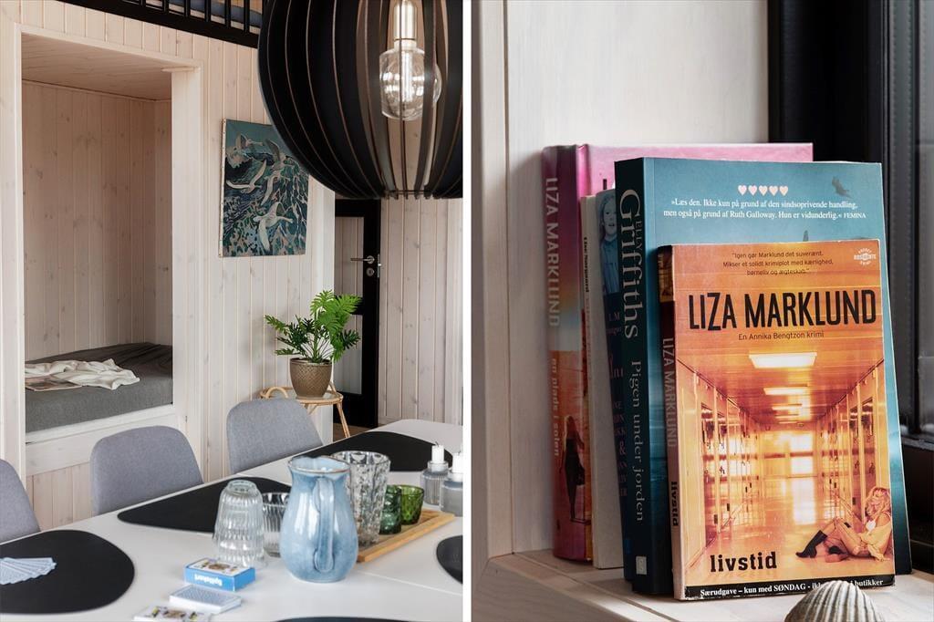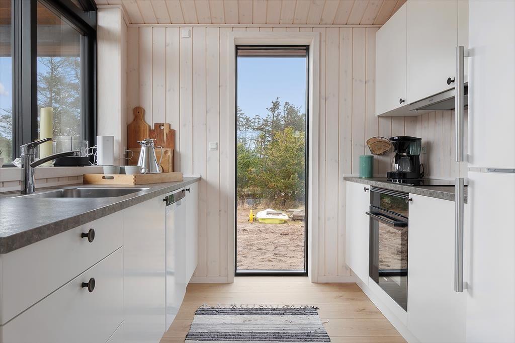 Das Ferienhaus empfängt dich mit einer hellen und gemütlichen Einrichtung, die den perfekten Rahmen für erholsame Urlaubstage schafft. Es verfügt über drei geräumige Schlafzimmer, eine Alkove und einen offenen Schlafboden, der zusätzlichen Platz für Kinder oder eine gemütliche Leseecke bietet. Im Herzen des Hauses befindet sich eine moderne Küche, in der du im Handumdrehen köstliche Urlaubsmahlzeiten zubereiten kannst. Die offene Verbindung zum Wohnzimmer sorgt für ein wunderbares Gefühl der Zusammengehörigkeit. Das Wohnzimmer ist mit einem Kamin ausgestattet, der an kühleren Tagen Wärme und Gemütlichkeit spendet, und von hier aus hast du direkten Zugang zu den herrlichen Terrassen, die die Natur ganz nah heranholen. Darüber hinaus verfügt das Ferienhaus über ein schönes Badezimmer sowie einen praktischen Eingangsbereich, in dem du nach einem langen Tag im Freien deine Jacken und Schuhe ablegen kannst.