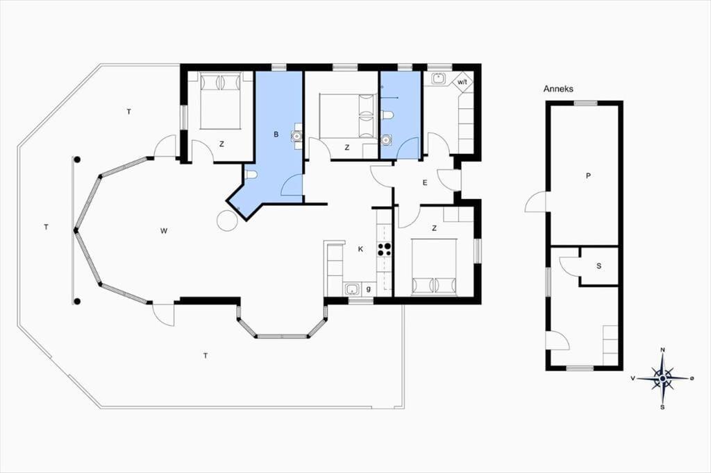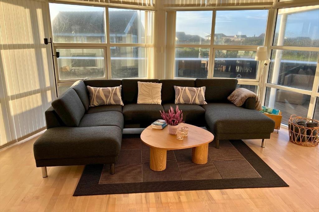 Im Inneren haben Sie insgesamt 125 m² zur Verfügung, sodass Sie ausreichend Platz für bis zu sechs Personen haben. Zwei der Schlafzimmer sind mit einem Doppelbett ausgestattet und das dritte mit einem Schlafsofa für zwei Personen. Zudem gibt es nicht nur ein, sondern zwei Badezimmer, was praktisch ist, wenn Sie sich morgens fertig machen müssen. In der offenen Küche können Sie die Kaffeemaschine einschalten und das erste Mahl des Tages zubereiten, und die Leckereien können am Esstisch genossen werden, der an einem der großen Fenster in der Wohnstube steht. Nicht nur die großen Fenster, sondern auch die hellen Farbtöne und die gute Deckenhöhe schaffen eine leichte und luftige Atmosphäre im Wohnzimmer, und ein Kaminofen steht bereit, um Wärme und Gemütlichkeit zu verbreiten.
