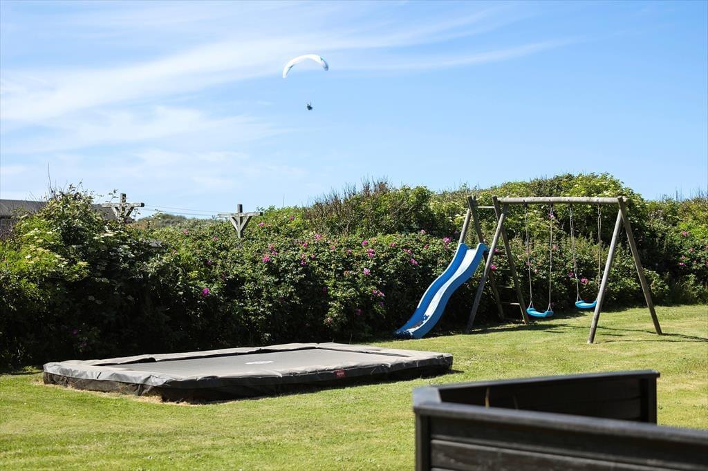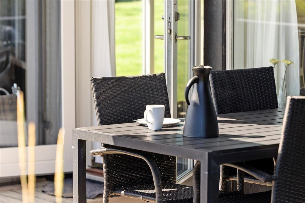 Nicht nur drinnen lädt Delfinvej 9 zum Wohlfühlen ein – auch draußen erwarten dich mehrere schöne Terrassenbereiche, auf denen du von morgens bis abends entspannen kannst. Auf der südlich ausgerichteten Terrasse kannst du unter freiem Himmel mit Blick auf die Nordsee speisen, während die Sonne langsam am Horizont versinkt. Der Tag beginnt ideal mit frisch gebrühtem Kaffee und Morgensonne und endet mit Grillabend und Sternenhimmel. Das gemütliche Grundstück ist ideal für Familien mit Kindern, denn es gibt auch Spiel- und Bewegungsmöglichkeiten – während die Kleinen frei spielen, können die Großen in der Sonnenliege zur Ruhe kommen. Insgesamt erwartet dich hier eine kleine Oase, in der Natur und Nähe im Mittelpunkt stehen und der Urlaub ganz nach deinem eigenen Tempo verläuft.