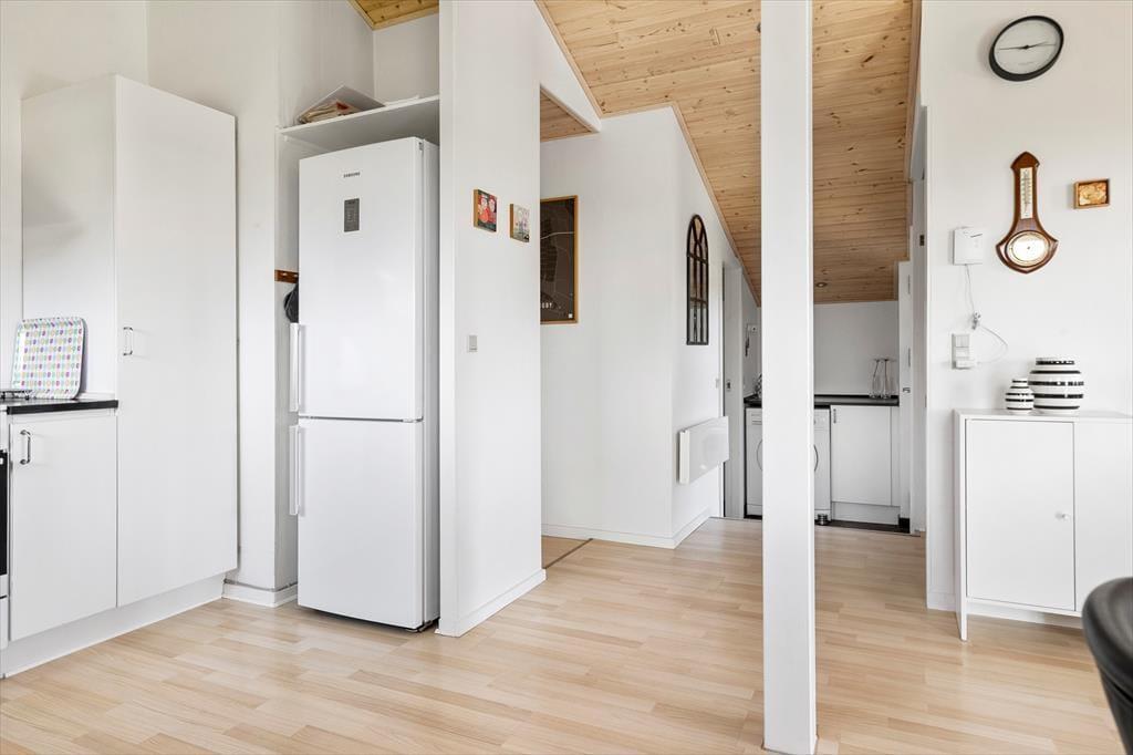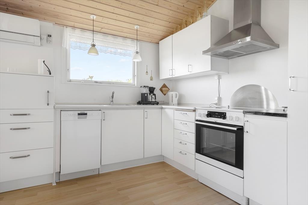 Das Ferienhaus liegt im ruhigen und landschaftlich reizvollen Gebiet Nr. Lyngby – bekannt für seine steile Küste, den breiten Sandstrand und die dramatische Natur. Vom Haus aus bist du in wenigen Minuten an der Nordsee, wo du täglich ein erfrischendes Bad nehmen, barfuß im Sand spazieren oder einfach nur den Anblick der Wellen genießen kannst, die gegen die Küste schlagen. Ganz in der Nähe liegt das charmante Løkken mit seinen gemütlichen Cafés und Restaurants, Kunstgalerien und lebhaften Sommerläden. Hier kannst du echte Urlaubsatmosphäre erleben, das alte Badehotel besuchen oder mit den Kindern nach einem langen Strandtag eine Eispause einlegen. Wenn du die raue westjütländische Natur erleben möchtest, bietet sich ein Ausflug zum Rubjerg Knude Fyr an – von der Spitze der Wanderdüne aus genießt du einen unvergesslichen Ausblick, und das nur eine kurze Autofahrt entfernt.