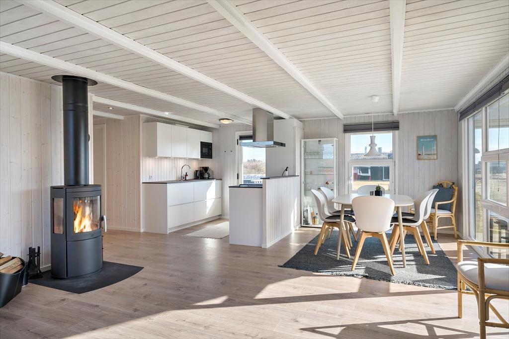 Im Jahr 2022 wurde das Urlaubsdomizil umfassend renoviert und erweitert. Die 99 m² große Wohnfläche umfasst einen Wohnraum, der mit seinen großen Fensterpartien einen Tageslichteinfall aus drei Himmelsrichtungen gewährt. Ein Kaminofen, eine energiesparende Wärmepumpe, ein Smart-TV und eine ansprechende Möblierung machen Ihr Urlaubsleben komfortabel. In der offenen Küche erwartet Sie ein moderner, praktischer Rahmen für die Zubereitung Ihrer Mahlzeiten. Die gemütliche Schlafnische im Wohnraum wird sich insbesondere bei kleinen und großen Kindern großer Beliebtheit erfreuen. Das Badezimmer verfügt über eine Dusche, eine Waschmaschine und einen Fliesenboden, unter dem sich eine Fußbodenheizung verbringt. Die drei vorhandenen Schlafzimmer beinhalten gute Betten und Kleiderschränke.