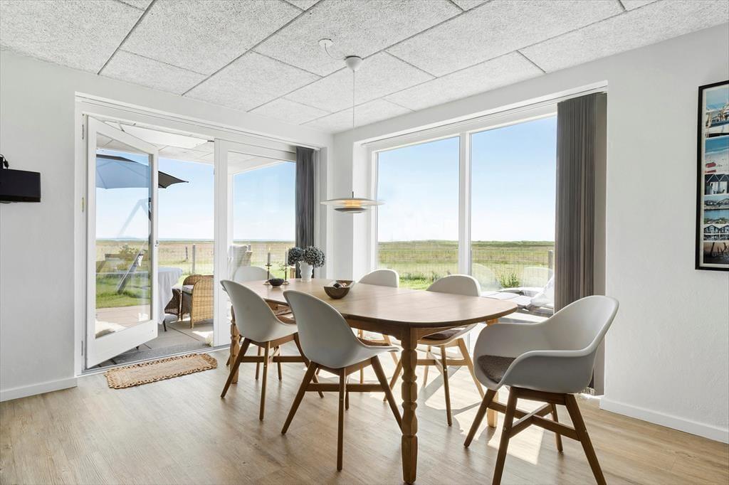 Das 108 m² große Ferienhaus aus dem Jahr 2014 präsentiert sich ansprechend und gepflegt. Die schöne Wohnatmosphäre ist auf die hellen Farbtöne, die moderne, schlichte Einrichtung und den Ausblick auf den Ringkøbing Fjord zurückzuführen, der hinter den Strandwiesen blau schimmert. Ihre gemütlichen Stunden am Esstisch und in der Polstersitzgarnitur nah am Flachbild-TV werden vom Feuer im Kaminofen stimmungsvoll untermalt. Die Küche fügt sich offen in den Wohn- und Essbereich ein. Erholsame Momente voller Wellnessflair verspricht Ihnen das größere der beiden Badezimmer, das mit einem Whirlpool und einer Sauna zu verwöhnen weiß. Nach einem langen, erlebnisreichen Tag an der frischen Luft, begeben Sie sich nachts in drei schönen Schlafzimmern zur Ruhe.