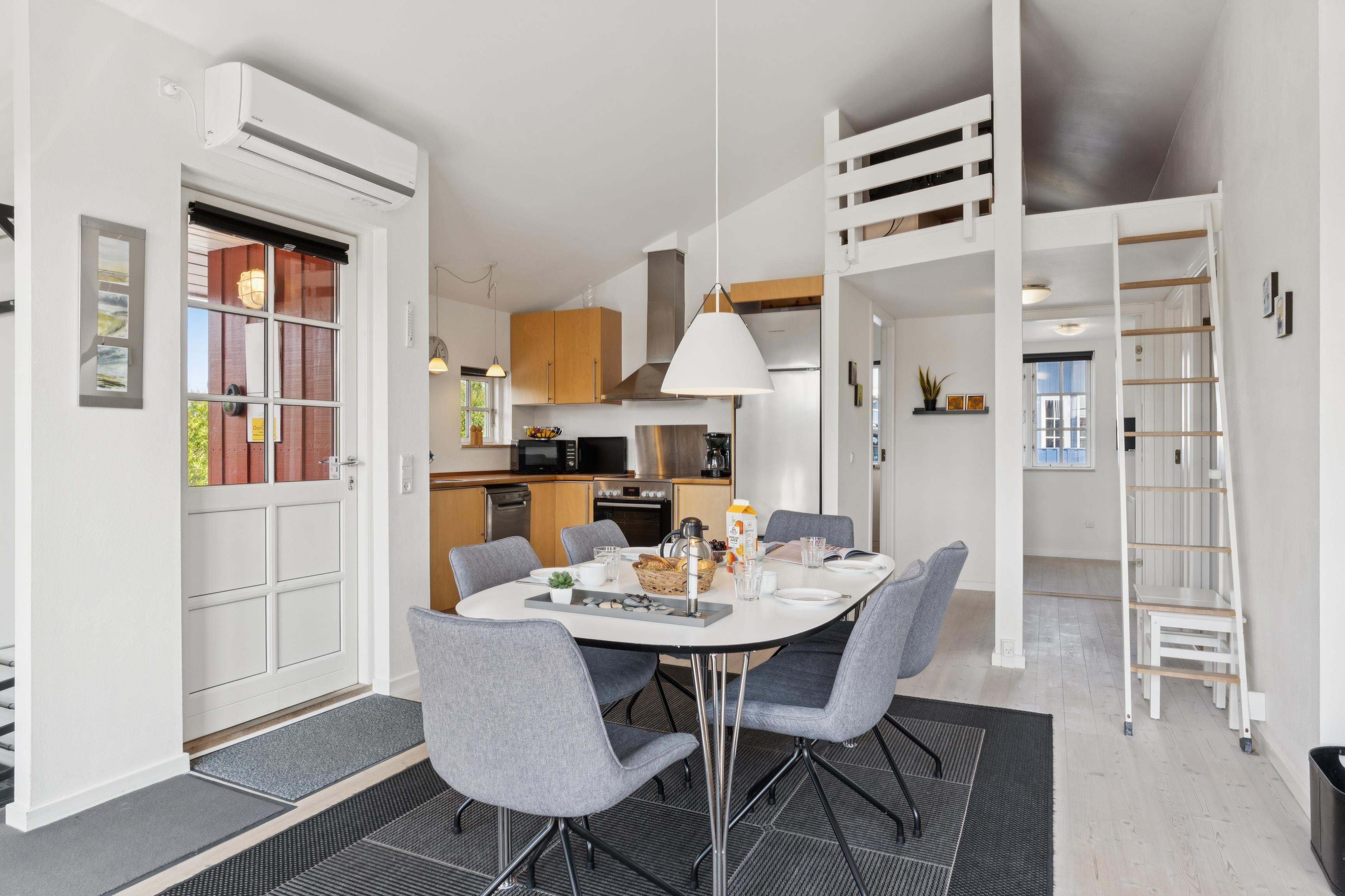 Die offene Wohn-/Küchenkombination schafft eine gemütliche Atmosphäre - perfekt für gesellige Stunden mit der Familie, Freunden oder einfach zu Zweit. Genießt die Wärme des Kaminofens an kühlen Abenden und hört das Knistern des Holzes, wenn die Flammen darin lodern. Außerdem ist das Ferienhaus mit einer kostengünstigen und energieeffizienten Wärmepumpe ausgestattet. Im Wohnzimmer gibt es einen Smart-TV mit dänischen und deutschen Kanälen sowie Chromecast und ein Radio. Im Loft gibt es ebenfalls einen Fernseher mit Chromecast und einen DVD-Player. Kostenloses Wlan ist ebenfalls vorhanden. Das Haus verfügt über ein helles Badezimmer mit Dusche, Fußbodenheizung und einem Whirlpool zum relaxen.