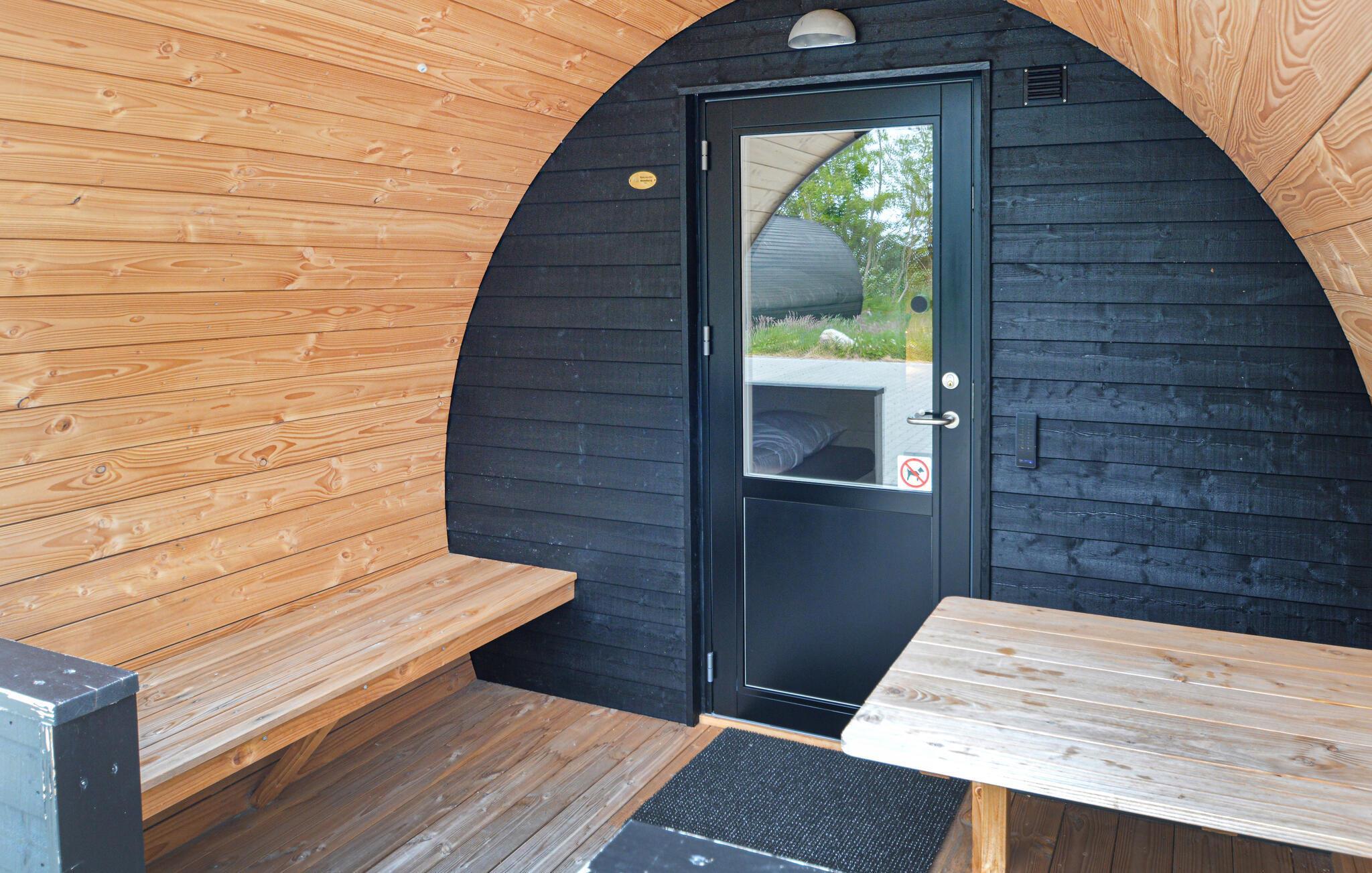 Gemütliche tonnenförmige Hütten in Dänemark mit modernem Design, ideal zum Entspannen und Entdecken der Natur.