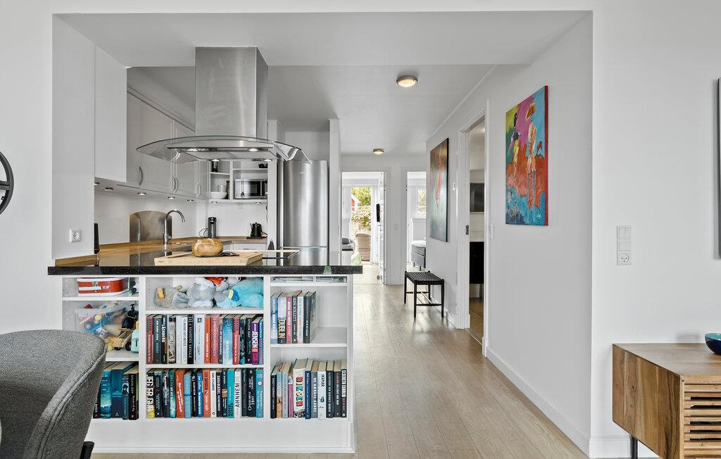 Freuen Sie sich auf diese große und stilvolle Ferienwohnung, die sich im Erdgeschoss schöner Hafenhäuser befindet. Farbvolle Kunst schmückt die Wände und bietet Ihnen in Verbindung mit den hochwertigen Möbeln und der lichtdurchfluteten Räume ein einladendes Ambiente, dass Sie zum Verweilen und Ausruhen einlädt. Entscheiden Sie selbst, ob Sie lieber in der Küche zaubern, in der Sauna schwitzen oder auf der Terrasse den Ausblick auf das Wasser genießen. Eine weitere Terrasse bietet Ihnen an der Rückseite des Hauses die besten Bedingungen für gesellige Abende im Freien.