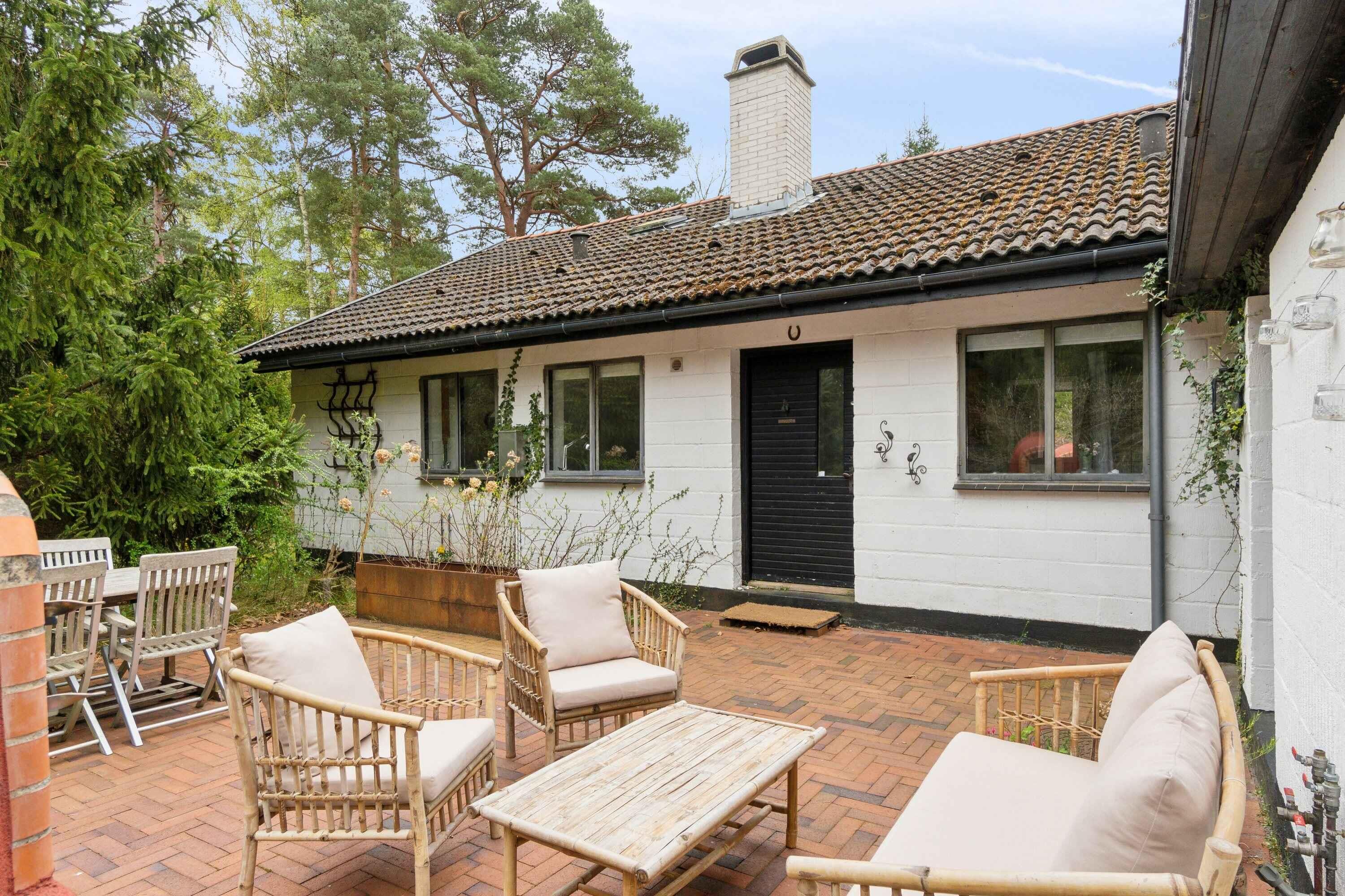 Modernisiertes 70er-Jahre Sommerhaus im Wald nahe Strand mit Pizzaofen, Holzofen und familienfreundlicher Ausstattung.
