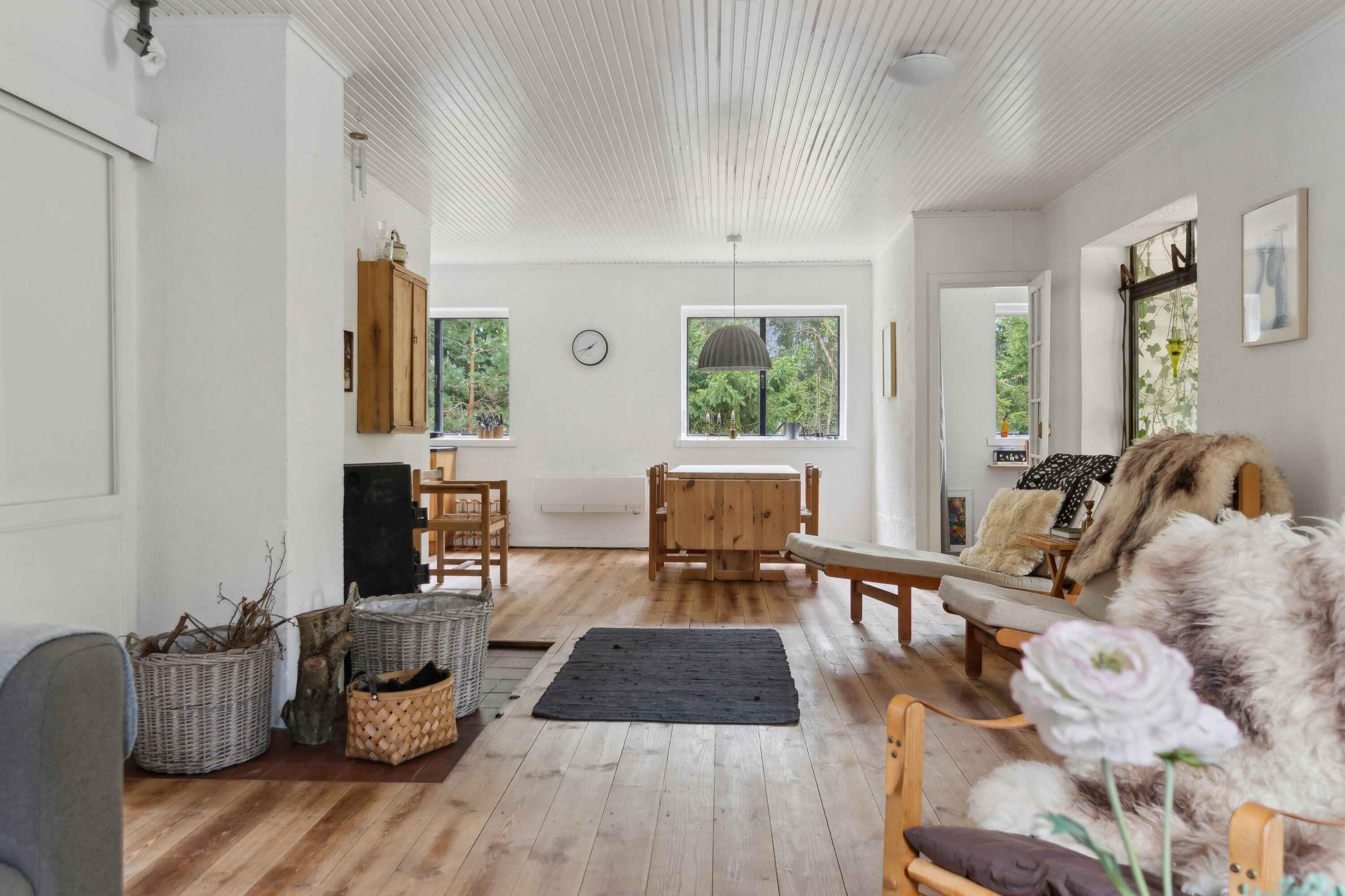 Hinweis: Aktualisierte Bilder des Hauses und der Zimmer erscheinen im Winter 2025/Frühjahr 2026. Willkommen im Humlehuset – einem architektengezeichneten Sommerhaus aus den 70er-Jahren, in dem Ruhe, Ästhetik und Funktionalität harmonisch zusammenkommen. Das Haus wurde kürzlich umfassend renoviert und präsentiert sich nun als moderne, einladende Oase mitten in der Natur. Innen erwartet Sie eine neue Küche mit viel Platz für gemeinsames Kochen sowie ein neues Badezimmer mit Fußbodenheizung, das pure Wohlfühlatmosphäre schafft. Im Wohnzimmer sorgen der neue Holzofen und die Wärmepumpe das ganze Jahr über für ein angenehmes Raumklima. Das Grundstück ist ein Naturgrundstück in einer ruhigen Sackgasse mit großen Bäumen und reichem Vogelbestand – ein Ort voller Frieden und Privatsphäre, mitten im Wald. Gleichzeitig gibt es reichlich Platz für Kinder mit Schaukel, Trampolin und offenen Grünflächen. Auf der Terrasse lädt ein importierter portugiesischer Pizzaofen zu gemütlichen Abenden mit Brot, Pizza und Feuer unter freiem Himmel ein – perfekt für lange Sommernächte mit Familie oder Freunden. Das Humlehuset bietet Platz für bis zu 6 Gäste, verteilt auf 3 Schlafzimmer und ein Annex, und verfügt über kostenlose Parkplätze. Für Familien mit Kindern ist alles vorbereitet: Kinderbett, Hochstühle, Wickelplatz, Babybadewanne, Kinderbesteck und Spielzeug (0–6 Jahre) stehen bereit. Mitten im Wald und nur 2 km vom Strand entfernt, liegen Meer, Wald und Ruhe direkt vor der Tür. Die nächsten Einkaufsmöglichkeiten sind nur 5 Minuten mit dem Auto oder 25 Minuten zu Fuß entfernt. Dies ist der richtige Ort für alle, die einen ruhigen Rückzugsort suchen, an dem Natur, Qualität und Nähe im Mittelpunkt stehen – egal ob als Familie, Freunde oder Paar, das in wunderschöner Umgebung entspannen möchte. Achtung: Wird nicht für gewerbliche Nutzung vermietet.