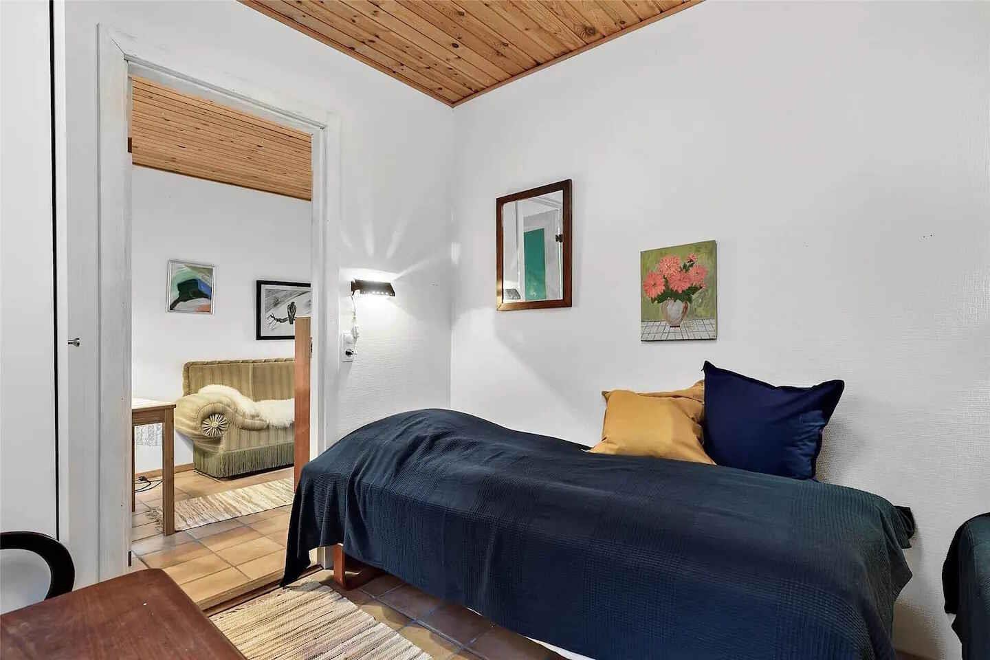Willkommen in diesem charmanten Ferienhaus in Nykøbing Sjælland. Dieses gemütliche Ferienhaus ist perfekt für eine Familie oder eine Gruppe von Freunden, die einen erholsamen Urlaub in der schönen Gegend rund um Nykøbing Seeland verbringen möchten. Das Haus hat 2 Zimmer und bietet Platz für bis zu 3 Personen. Es gibt 1 Badezimmer im Haus. Die Betten sind aufgeteilt in 2 Einzelbetten in einem Zimmer, ein Einzelbett im anderen Zimmer und ein Einzelbett im Wohnzimmer. Das Haus ist im Retro-Stil eingerichtet: Gemütliches Wohnzimmer mit kleinem Holzofen und Zugang zu einer überdachten Terrasse, auf der Sie auch bei Regen die Ruhe der Natur genießen können. Von der kleinen Küche aus gelangt man in das Wohn- und Esszimmer, getrennt durch Glastüren. Toilette und Dusche befinden sich in 2 verschiedenen Räumen. Hinter dem Haus befindet sich eine kleine Wiese umgeben von Bäumen und Sträuchern, also ganz privat und auf der Terrasse können Sie in den Gartenmöbeln entspannen, den Grill anfeuern und einfach die Sommerabende in ruhiger Umgebung genießen. BITTE BEACHTEN: - Handtücher und Bettwäsche sind vom Mieter selbst mitzubringen! - Brennholz oder Briketts für den Ofen müssen gekauft werden, was auf dem Grundstück zu finden ist, ist für den privaten Gebrauch. (erhältlich in vielen Supermärkten oder am Tank wenige Minuten entfernt) - Rauchen nicht erlaubt. Nykøbing Sjælland ist bekannt für seine fantastischen Strände und dieses Ferienhaus ist nur ca. 1 km vom Strand entfernt. Es gibt auch viele Aktivitäten in der Umgebung, darunter Radfahren, Wandern und Besuche lokaler Sehenswürdigkeiten wie Schloss Dragsholm, Sommerland Sjælland und Odsherred Zoo. Wenn Sie Wassersport mögen, gibt es entlang der Küste gute Möglichkeiten zum Surfen, Segeln und Angeln. Es gibt auch viele gute Restaurants in der Gegend, und Sie können alles von lokalen Spezialitäten bis hin zu internationalen Gerichten genießen. Nehmen Sie z.B. auf einem Ausflug nach Nykøbing Sjælland und probieren Sie einige der lokalen Restaurants und Cafés. Dieses Ferienhaus ist der perfekte Ausgangspunkt, um die schöne Gegend um Nykøbing Sjælland zu erkunden und einen schönen und erholsamen Urlaub am Strand zu verbringen.
