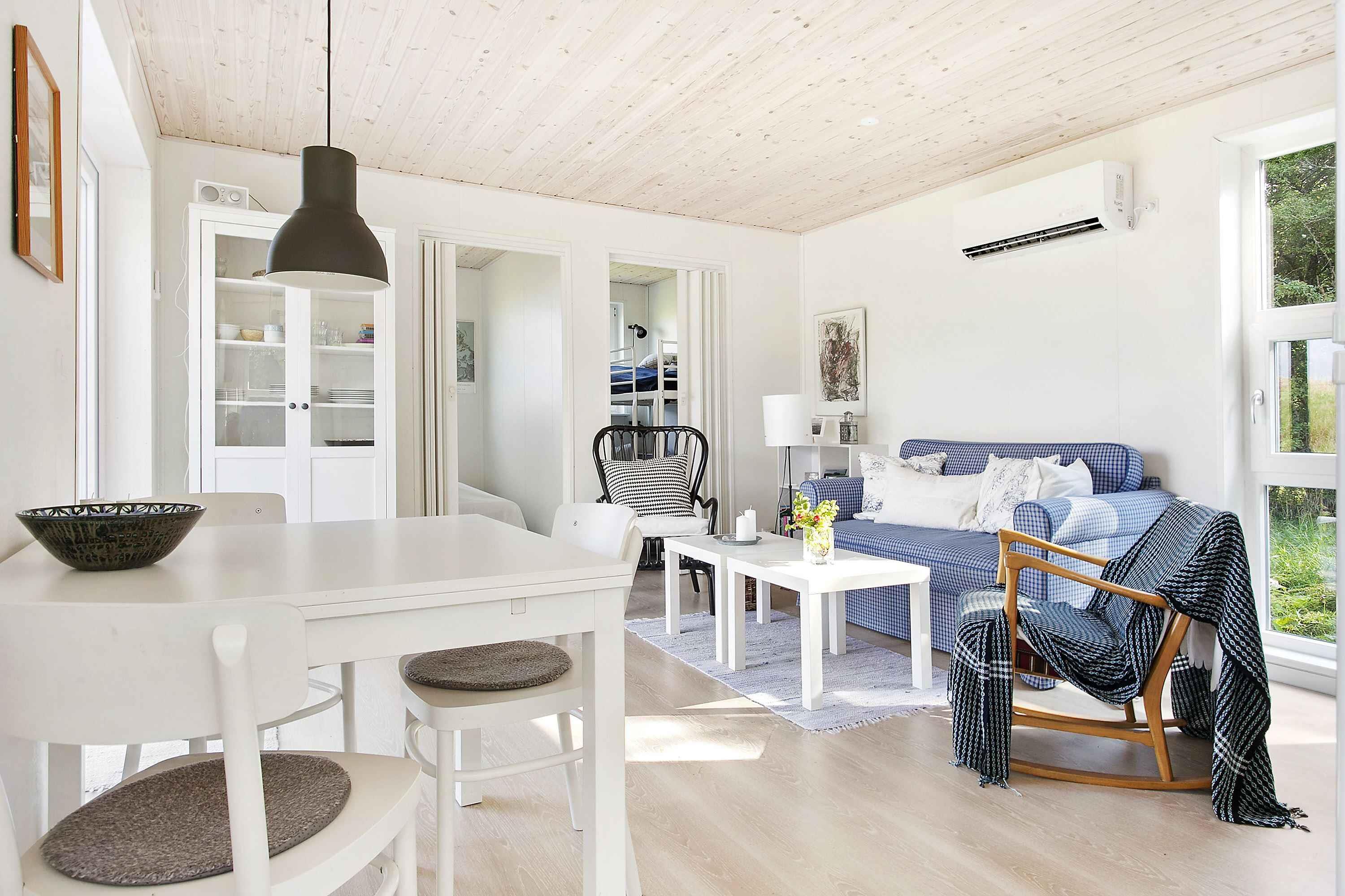 Nur 100 Meter vom Wasser entfernt liegt dieses kompakte und gut gestaltete Ferienhaus, das den perfekten Rahmen für einen erholsamen Urlaub bietet. Es bietet Platz für vier Personen in zwei separaten Schlafzimmern. Die 43 m² Wohnfläche sind optimal genutzt, sodass sowohl der Wohnbereich als auch die Schlafräume großzügig wirken. Eine Wärmepumpe sorgt das ganze Jahr über für ein angenehmes Raumklima, egal ob Sie die Sommersonne oder ein gemütliches Wochenende am Wasser genießen möchten. Die funktionale Küche ermöglicht es, Mahlzeiten mit lokalen Zutaten zuzubereiten. Nach dem Essen kann der Tag auf der Terrasse oder bei einem Spaziergang zum Strand ausklingen. Nur wenige Schritte vom Haus entfernt erwartet Sie das Strandleben. Morgendliches Baden, Entspannung im Sand und beeindruckende Sonnenuntergänge über dem Meer gehören ganz natürlich zum Urlaub dazu. Die Umgebung bietet Naturerlebnisse, charmante Hafenstädte und großartige Möglichkeiten für Wanderungen und Radtouren. Kleine Galerien, lokale Restaurants und eine große Auswahl an frischem Fisch und Meeresfrüchten runden das Angebot ab. Die Nähe zu Wäldern, Dünen und weiten Landschaften macht diese Region zu einem idealen Urlaubsziel. Kinder können unbeschwert in der Natur spielen, während Erwachsene die Ruhe, das Licht und die frische Meeresluft genießen. Ein Ferienhaus nahe am Strand, mitten in der Natur und umgeben von Erlebnissen. Perfekt für alle, die einen einfachen, aber stimmungsvollen Urlaub am Wasser suchen. Achtung: Wird nicht für gewerbliche Nutzung vermietet.