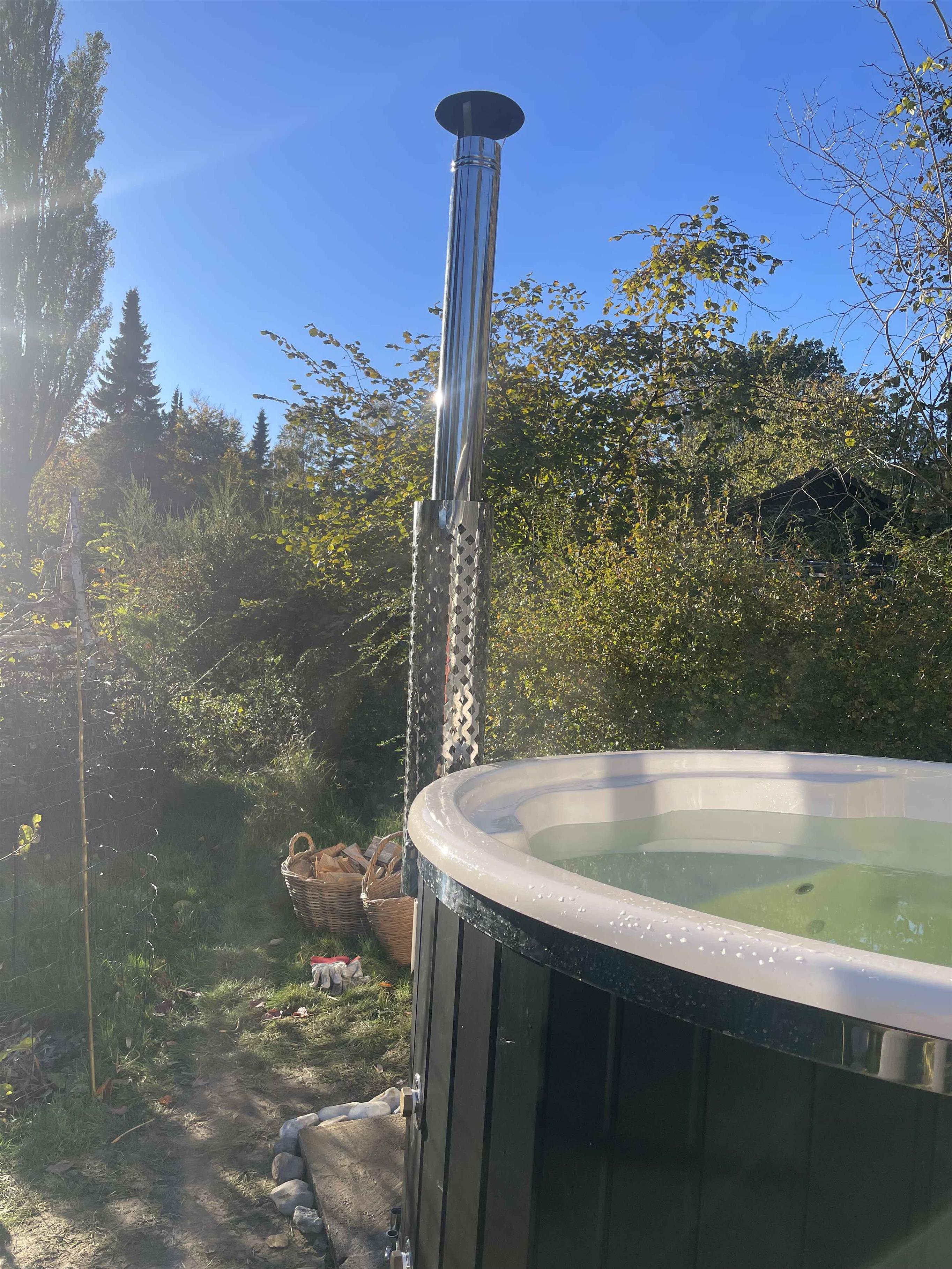 Gemütliches Holzferienhaus nahe Strand und Natur in ruhiger Lage für erholsamen Urlaub mit Kaminofen und großem Garten.