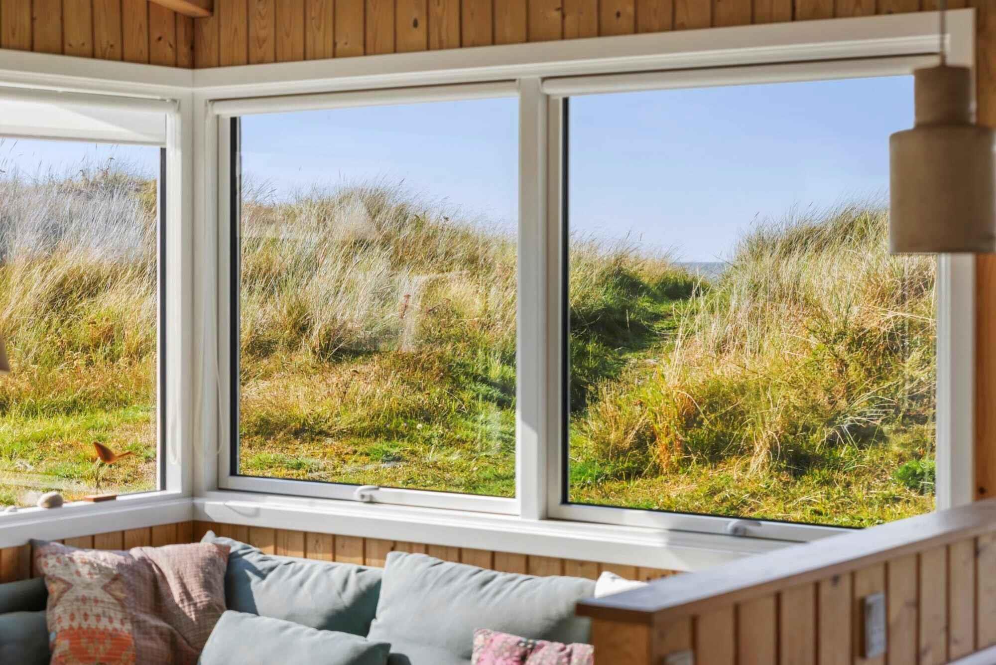 Charmantes Ferienhaus direkt an Dünen und Meer mit großem Meerblickfenster und gemütlicher Atmosphäre.