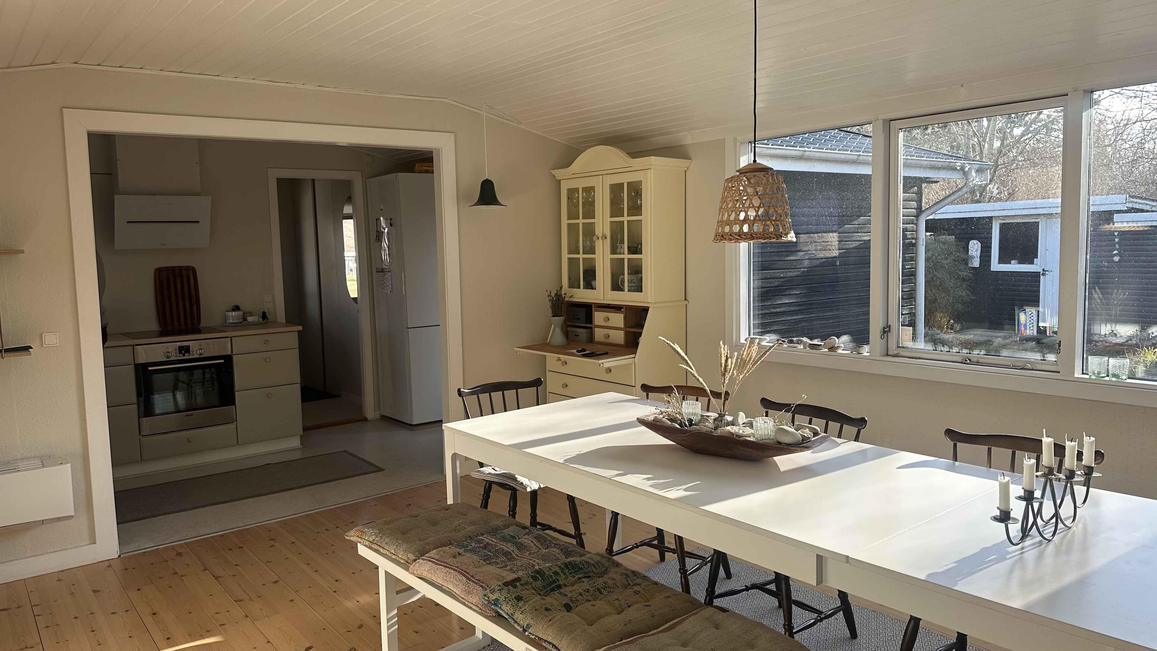 Willkommen in diesem gemütlichen und gut ausgestatteten Ferienhaus im begehrten Odsherred – ideal für einen erholsamen Urlaub nahe Strand, Natur und charmanten Küstenorten. Das Haus liegt nur 200 Meter von einem breiten und kinderfreundlichen Strand entfernt, perfekt zum Baden, Sonnen, Steinesammeln und für lange Spaziergänge entlang der Küste. Das Ferienhaus bietet 8 Schlafplätze, verteilt auf drei Schlafzimmer im Haupthaus sowie ein gemütliches Nebengebäude mit Doppelbett – ideal für Familien oder Freundesgruppen. Die zwei hellen Wohnräume verfügen über große Fensterflächen, einen Kaminofen und direkten Zugang zur Terrasse, was das ganze Jahr über eine entspannte Urlaubsatmosphäre schafft. Im Außenbereich erwartet Sie eine große, nach Süden und Südwesten ausgerichtete Terrasse mit Ess- und Lounge-Bereich – perfekt für den Morgenkaffee, Grillabende oder lange Sommerabende. Das großzügige Grundstück bietet viel Platz für Spiele, Ballspiele, Entspannung in der Hängematte und gemütliche Stunden an der Feuerstelle. Die Lage ist ideal: nahe Nykøbing Sjælland, Rørvig und Klint mit gemütlichen Häfen, Eiscafés, Restaurants, Sommerland Sjælland und herrlichen Naturerlebnissen. Ein Urlaub voller Ruhe und Möglichkeiten. Achtung: Wird nicht für gewerbliche Nutzung vermietet.