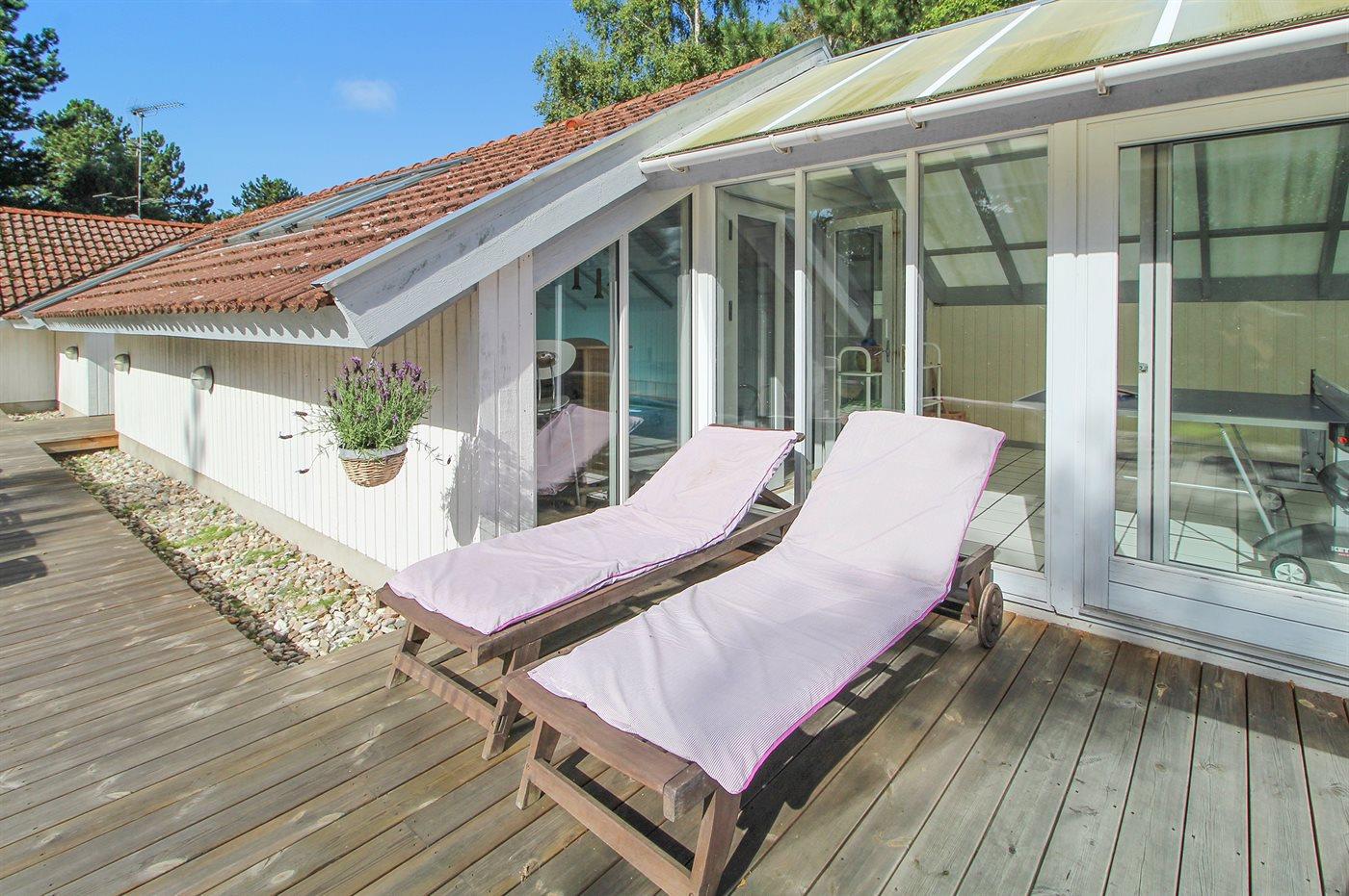 Wünschen Sie sich einen angenehmen Urlaub mit Ihrer Familie oder mit Ihren Freunden, dann ist die Möglichkeit hier. Wir können Ihnen dieses Ferienhaus älteren Jahrgangs (1990) mit Swimmingpool, Whirlpool und Sauna anbieten. Das Haus liegt auf einem großen, abgeschirmten Naturgrundstück, nur 500 m von einem der besten Badestrände Nordseelands; Nordstrand entfernt. Innen gibt es Holzwände und -decken. Holzböden im Wohnzimmer und in den Zimmern, sonst Klinkerböden. Das Haus ist für 2 Familien geeignet. Es gibt 12 komfortable Schlafplätze auf 6 Schlafzimmer verteilt: 5 mit Doppelbett und 1 mit 2 Einzelbetten. Außerdem 3 Badezimmer mit Duschnische und Fußbodenheizung. Das eine Badezimmer enthält auch eine Sauna. Die Küche ist mit Mikrowelle, Geschirrspüler sowie Herd mit Umluftofen und Ceran-Feld ausgestattet. Die Küche ist mit dem großen Wohnzimmer kombiniert, das u. a. TV mit digitalem Satellitenanschluss, DVD-Spieler sowie Stereoanlage mit Radio und CD-Spieler enthält. In der Pool-Abteilung mit beheiztem Klinkerboden finden Sie den Swimmingpool (5,0 X 3,0 X 1,35 m) und einen 3-Pers.-Whirlpool. Großer Wintergarten mit u. a. Tischtennis und Ausgang zu großer Terrasse mit div. Gartenmöbeln. Ein Teil der Terrasse ist überdacht. Außerdem stehen kabellose Internetverbindung via Glasfasernetz, Waschmaschine, Wäschetrockner, Kinderbett, Kinderhochstuhl, Schaukel und Carport zur Verfügung. Gute Einkaufsmöglichkeiten in Nykøbing Sj.