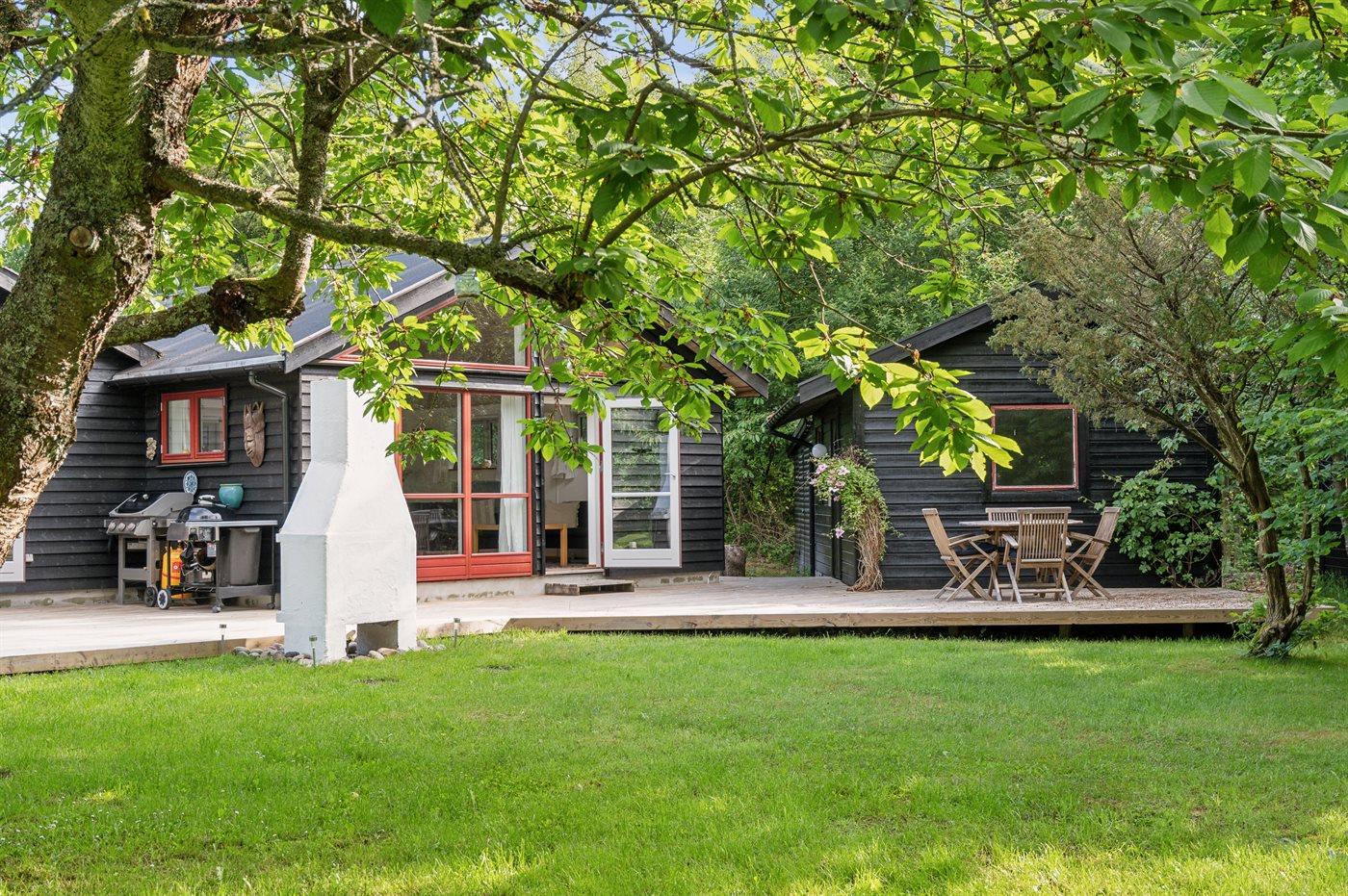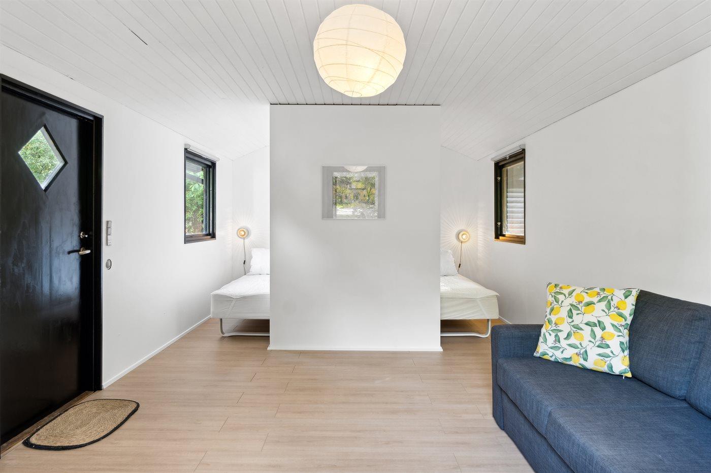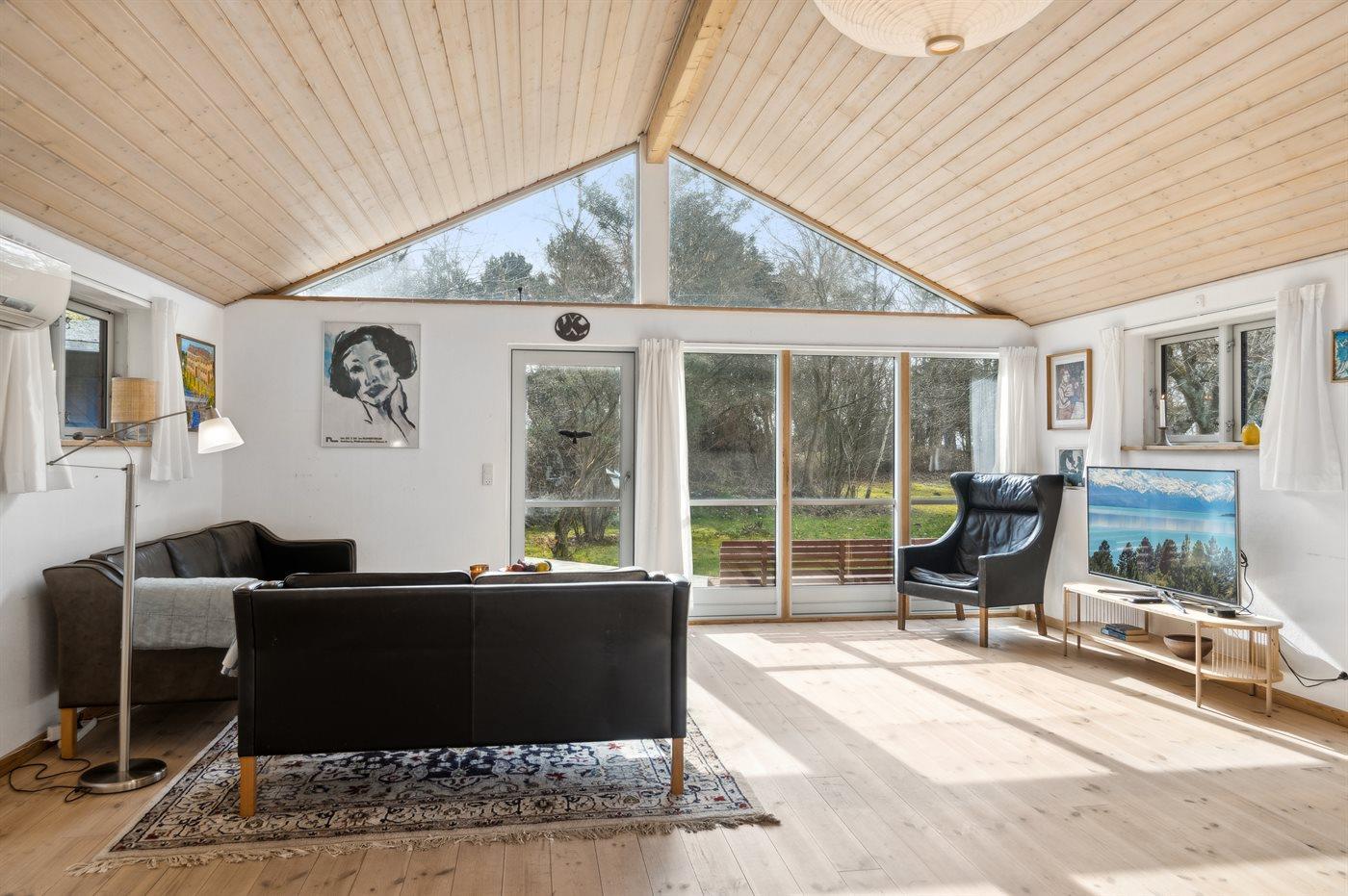 Dieses Ferienhaus liegt nur 120 Meter vom Strand und dem Fjord entfernt. Du gehst direkt vom Grundstück aus vorbei an dem geschützten Hügel, der auf dem großen landschaftlich reizvollen Grundstück liegt, durch den Wald und bist dann direkt am Strand. Das Haus liegt in der ruhigsten und malerischsten Umgebung mit reicher Tierwelt. Hier gibt es reichlich Gelegenheit für lange Spaziergänge, Angeln und Freizeitaktivitäten auf dem Wasser. Das Haus ist von einer großen Südterrasse umgeben, wo Ruhe und Sonne genossen werden können. Es liegt in einem kleinen Ferienhausgebiet in ländlicher Umgebung, aber dennoch in der Nähe des Sommerlebens in Nykøbing Sjælland und Rørvig. Im Inneren dominiert der große gemütliche Wohnküchenbereich, der offen mit dem Wohnzimmer verbunden ist. Von hier aus gelangt man auf die Terrasse. Es gibt 2 Schlafzimmer, beide mit Doppelbett, im Haus und 4 Schlafplätze verteilt auf 2 Doppelbetten im Nebengebäude. Es gibt 1 Badezimmer mit Dusche, Waschmaschine und Trockner sowie 1 Gästetoilette.