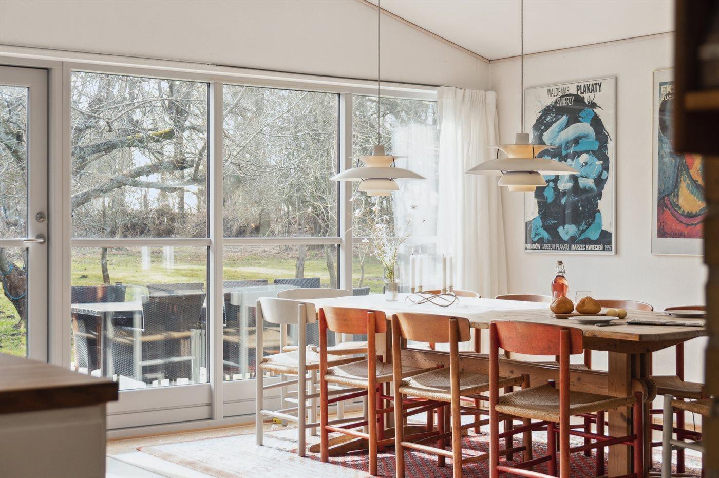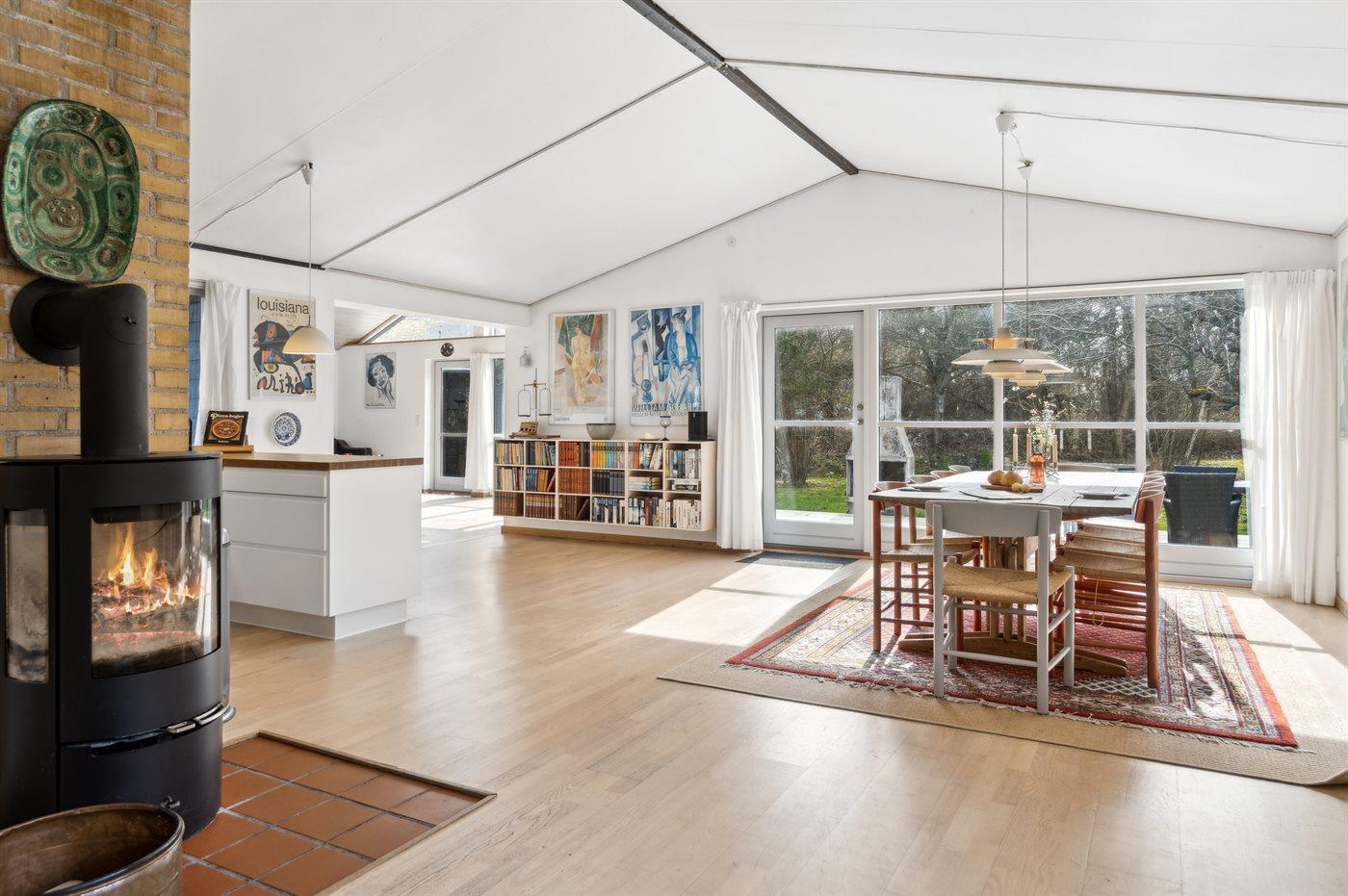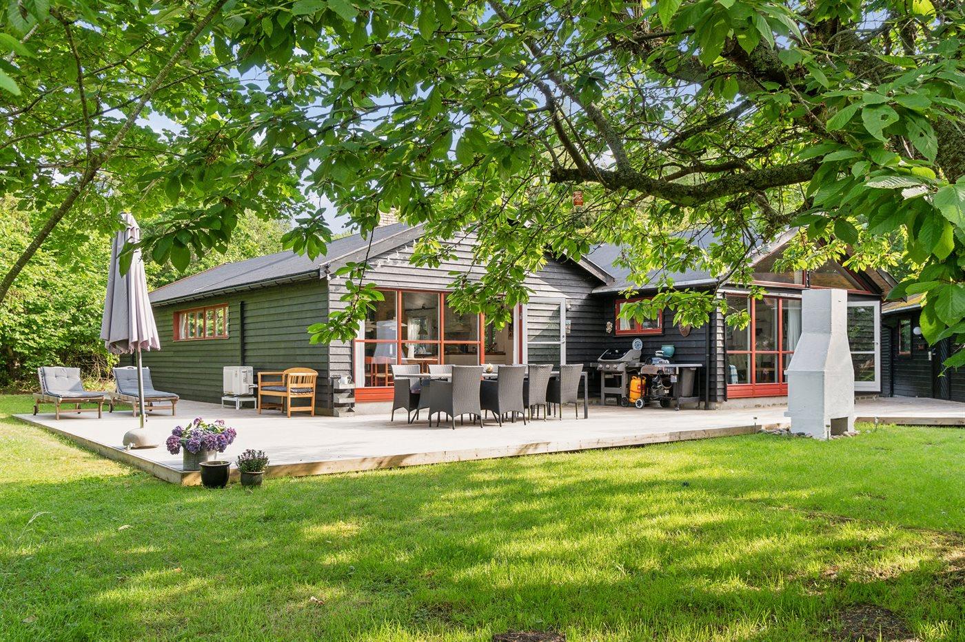 Dieses Ferienhaus liegt nur 120 Meter vom Strand und dem Fjord entfernt. Du gehst direkt vom Grundstück aus vorbei an dem geschützten Hügel, der auf dem großen landschaftlich reizvollen Grundstück liegt, durch den Wald und bist dann direkt am Strand. Das Haus liegt in der ruhigsten und malerischsten Umgebung mit reicher Tierwelt. Hier gibt es reichlich Gelegenheit für lange Spaziergänge, Angeln und Freizeitaktivitäten auf dem Wasser. Das Haus ist von einer großen Südterrasse umgeben, wo Ruhe und Sonne genossen werden können. Es liegt in einem kleinen Ferienhausgebiet in ländlicher Umgebung, aber dennoch in der Nähe des Sommerlebens in Nykøbing Sjælland und Rørvig. Im Inneren dominiert der große gemütliche Wohnküchenbereich, der offen mit dem Wohnzimmer verbunden ist. Von hier aus gelangt man auf die Terrasse. Es gibt 2 Schlafzimmer, beide mit Doppelbett, im Haus und 4 Schlafplätze verteilt auf 2 Doppelbetten im Nebengebäude. Es gibt 1 Badezimmer mit Dusche, Waschmaschine und Trockner sowie 1 Gästetoilette.
