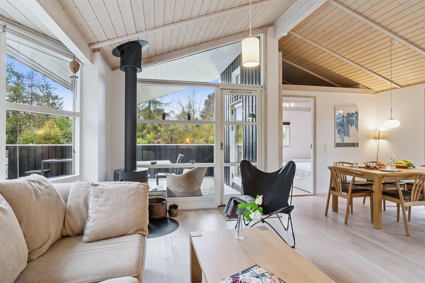 Das Haus wird energieeffizient mit einer Luft-Luft-Wärmepumpe beheizt, und für besonders gemütliche Stunden gibt es einen Kaminofen.