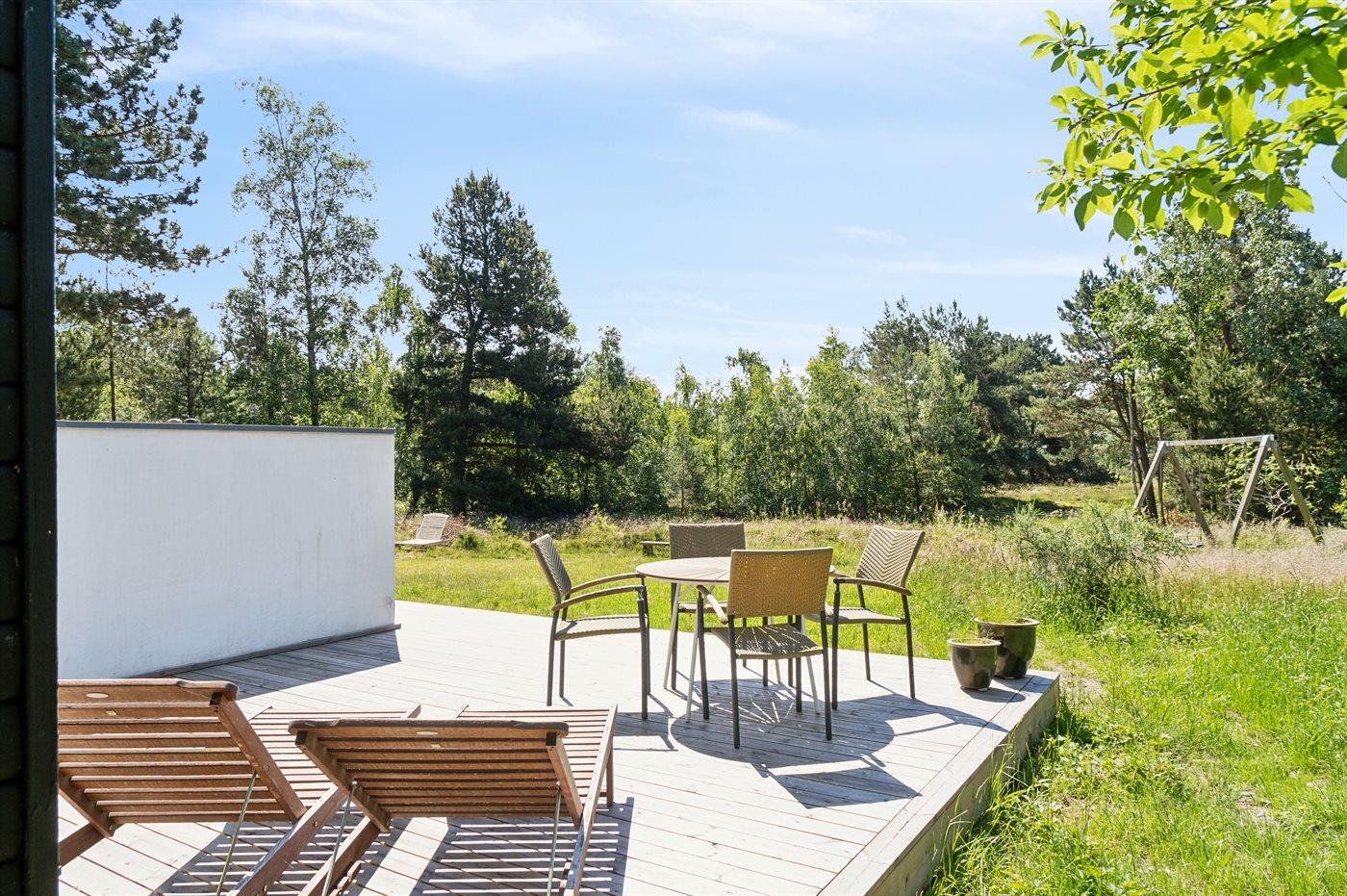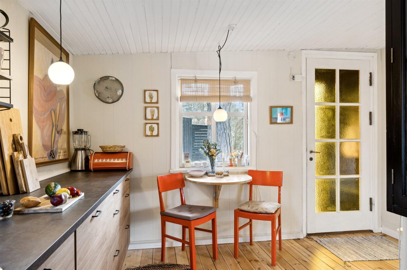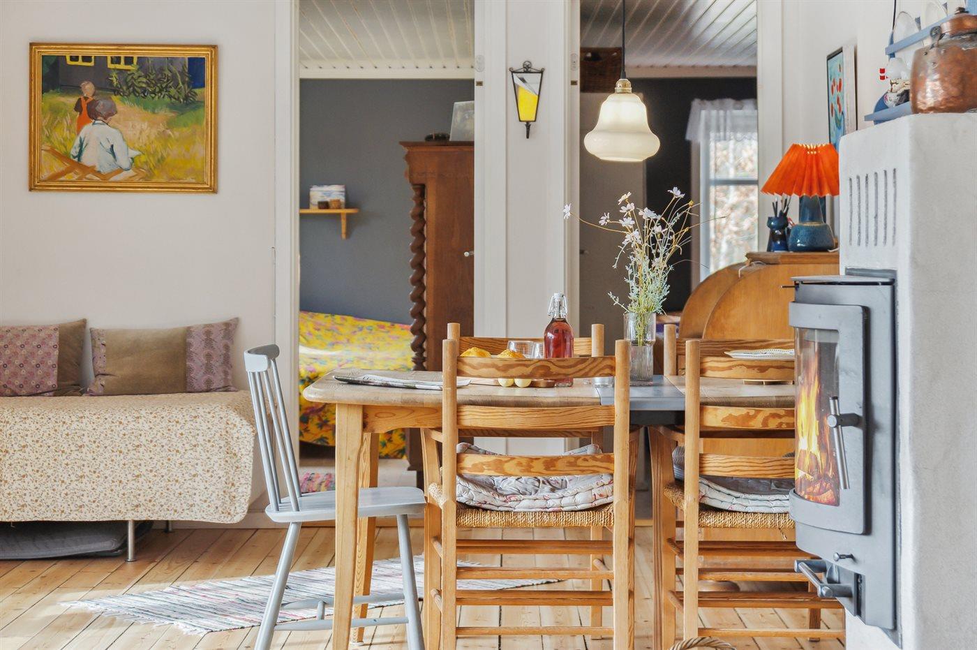 Von dem gemütlichen Wohnzimmer mit Essbereich und der herrlichen nach Süden ausgerichteten Holzterrasse kannst du den Blick über das Meer und die wunderschöne Umgebung genießen. Auf der gegenüberliegenden Seite des Hauses gibt es eine weitere Terrasse, wo du dich vor dem Wind geschütz und im Schatten der umliegenden Bäume aufhalten kannst.